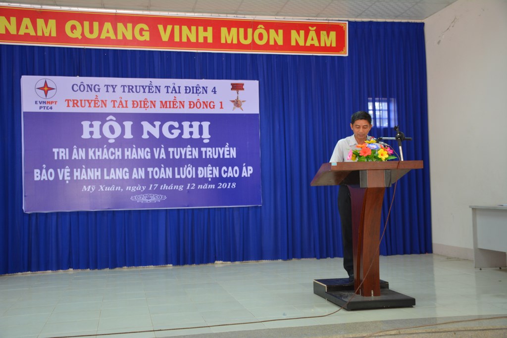 Nhằm đánh giá công tác quản lý, bảo vệ lưới điện, công tác phối hợp với Chính quyền địa phương giải quyết các trường hợp vi phạm hành lang lưới điện trên địa bàn phường Mỹ Xuân – thị xã Phú Mỹ - tỉnh Bà Rịa-Vũng Tàu trong năm 2018; cũng như để duy trì và làm tốt hơn nữa công tác phối hợp bảo vệ hệ thống lưới điện trong năm 2019. Ngày 17 tháng 12 năm 2018. Tại hội trường Trung tâm văn hóa, thể thao - học tập cộng đồng phường Mỹ Xuân, thị xã Phú Mỹ, tỉnh Bà Rịa-Vũng Tàu. Truyền tải điện Miền Đông 1 đã tổ chức chương trình “Hội nghị Tri ân khách hàng” kết hợp tuyên truyền công tác Bảo vệ An toàn công trình lưới điện cao áp năm 2018.