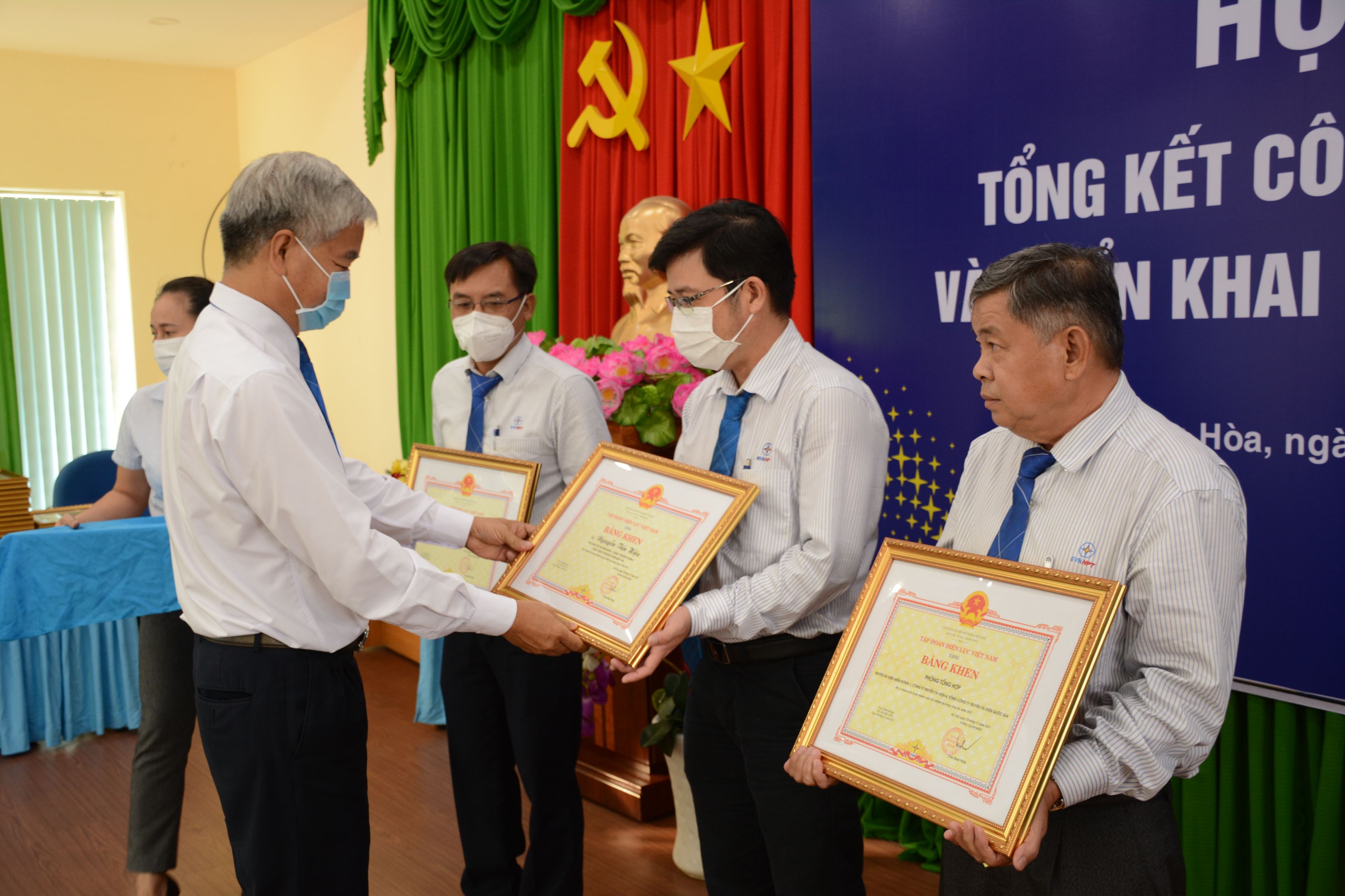 Ông Võ Đình Thủy-Bí thư Đảng ủy-Giám đốc Công ty trao tặng Bằng khen cho tập thể và cá nhân trong Hội nghị.