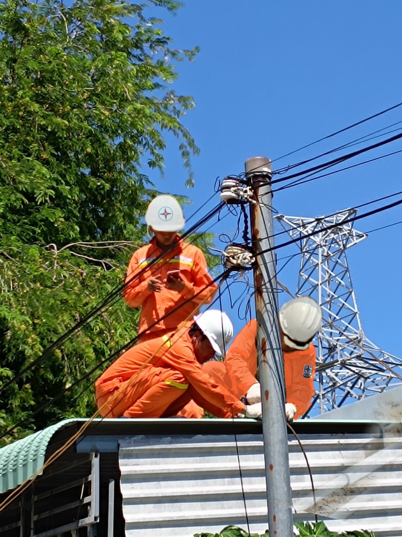 Chằng néo mái tôn nhà dân xung quanh trạm