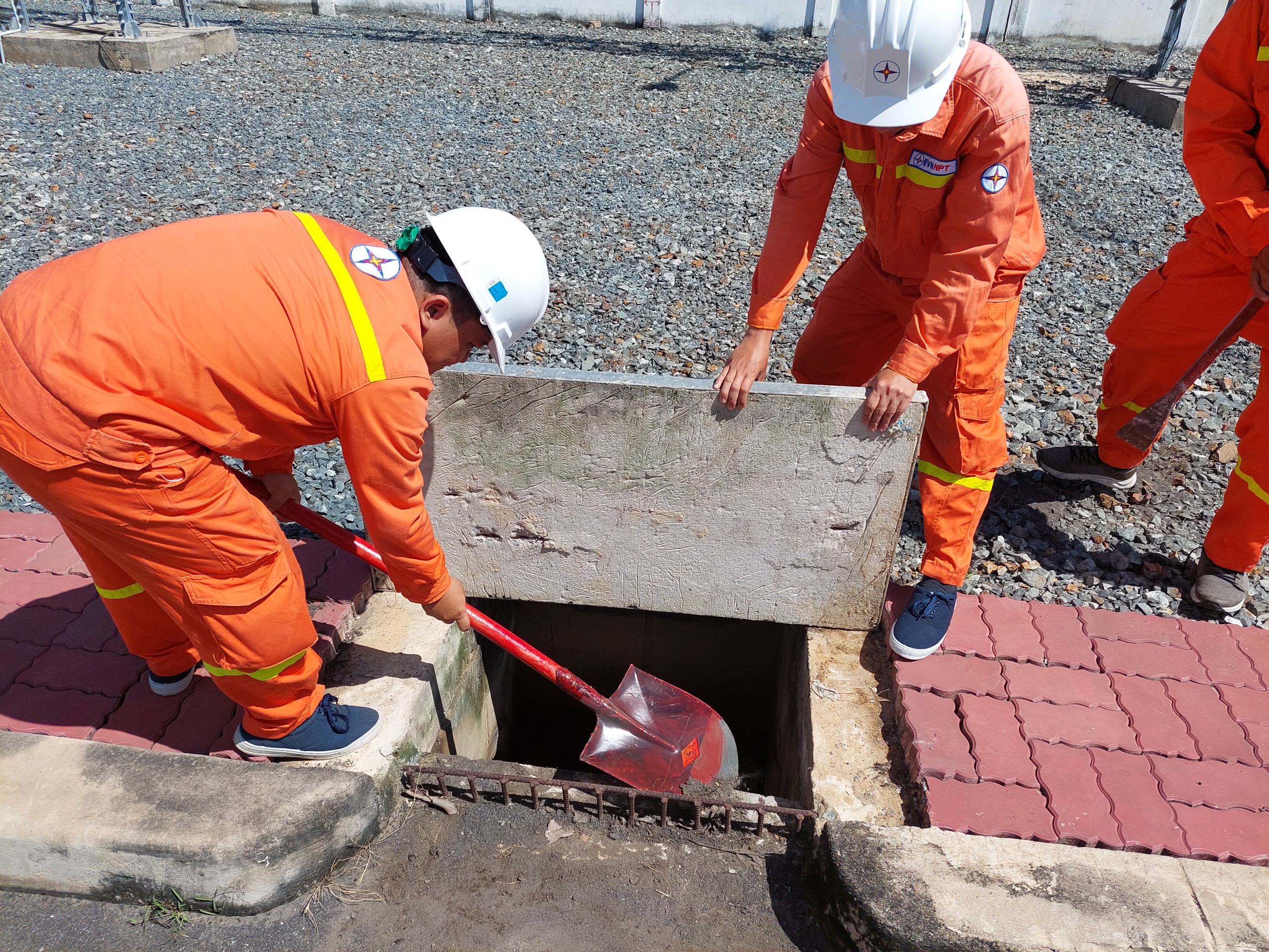 Nạo vét, khơi thông hố ga, mương cáp trong trạm.