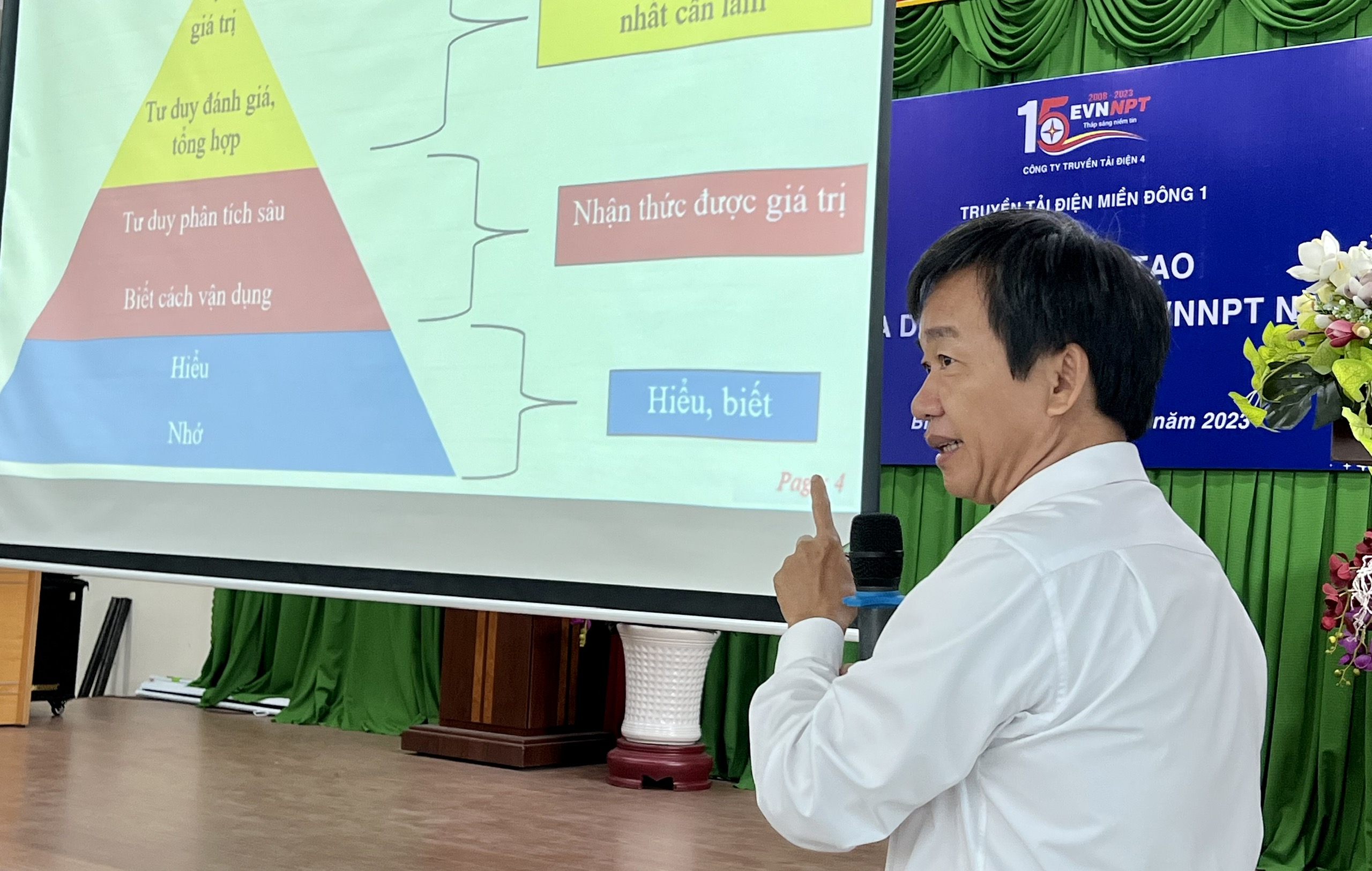 Trong suốt quá trình bồi huấn kiến thức, Giám đốc đặc biệt làm rõ mối liên hệ giữa nhận thức và hành động thực tiễn được mô tả chi tiết trong bộ Tài liệu tập huấn, về mối liên quan mật thiết giữa Tài liệu Văn hóa EVNNPT và Tài liệu Văn hóa EVN, về nhận định và làm rõ ý nghĩa sâu sắc các giá trị cốt lõi, các chuẩn mực đạo đức cũng như phân tích từng cấp độ nhận thức của CBCNV; không khí lớp học cũng trở nên sinh động hơn sau những trao đổi giao lưu tương tác giữa giảng viên và các học viên với nhau về những kiến thức tìm hiểu quá trình hình thành của Tài liệu Văn hóa EVNNPT, Tài liệu Văn hóa EVN; qua đó cho thấy sự quan tâm của CBCNV đối với việc thực thi theo Văn hóa EVNNPT. Khóa đào tạo VHDN đã hoàn thành các nội dung theo kế hoạch đề ra, đảm bảo chất lượng và hiệu quả. Tỷ lệ học viên triệu tập đạt 100%, các học viên tham gia với tinh thần học tập nghiêm túc; trao đổi giao lưu phát biểu ý kiến xây dựng sát với thực tiễn của bài giảng.