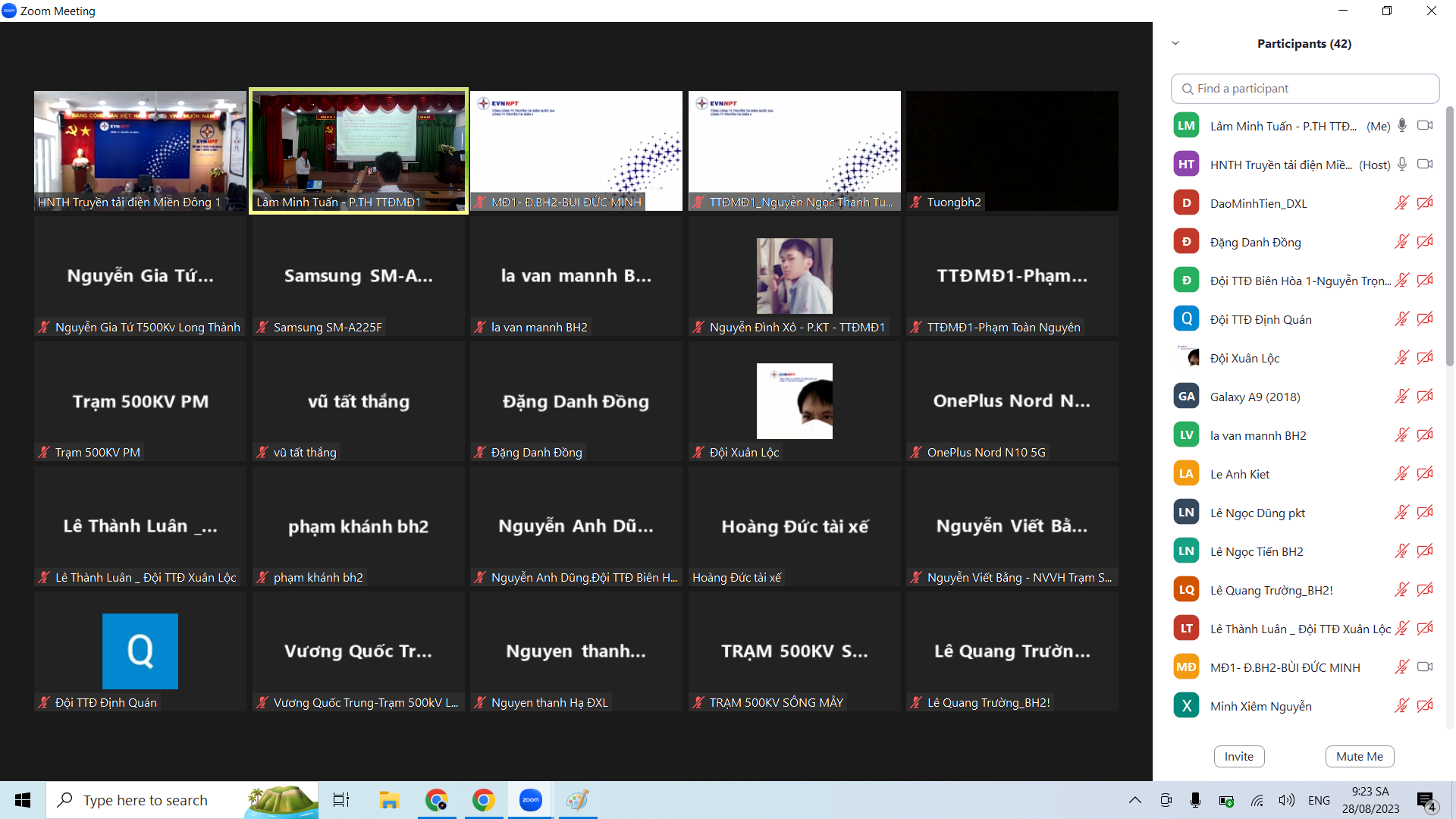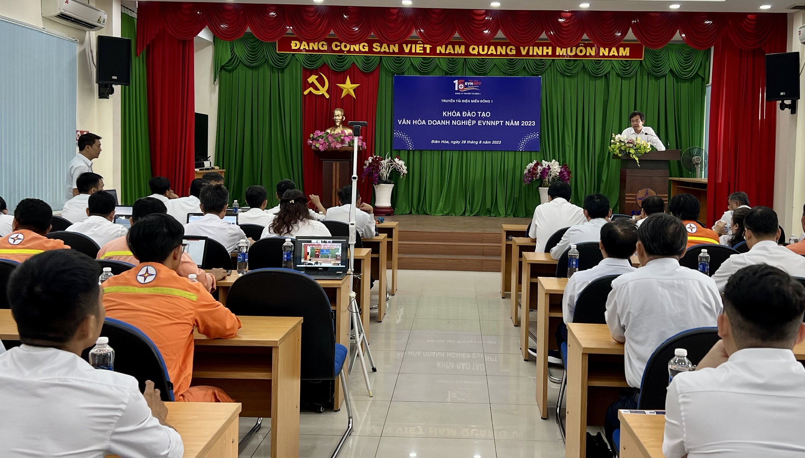 Ngày 28 tháng 8 năm 2023, Truyền tải điện Miền Đông 1 (TTĐMĐ1) đã tổ chức thành công khóa đào tạo Văn hóa doanh nghiệp năm 2023 theo kế hoạch chuyên đề của năm cho 266 CBCNV, trong đó tập trung trực tiếp tại hội trường là 102 CBCNV gồm Ban Lãnh đạo Truyền tải, Lãnh đạo các phòng, đơn vị, toàn thể CBCNV khối gián tiếp, tổ trưởng Công đoàn; trực chính, trực phụ Trạm biến áp tổ thao tác lưu động; cán bộ phụ trách công tác truyền thông VHDN; cán bộ phụ trách công tác hành lang các Trạm, Đội, Tổ TTLĐ, các kỹ sư mới tuyển dụng cùng 164 CBCNV học trực tuyến qua nền tảng zoom. Trực tiếp bồi huấn khóa đào tạo là đồng chí Nguyễn Minh Dũng – Bí thư Đảng ủy bộ phận, Giám đốc Truyền tải điện Miền Đông 1.