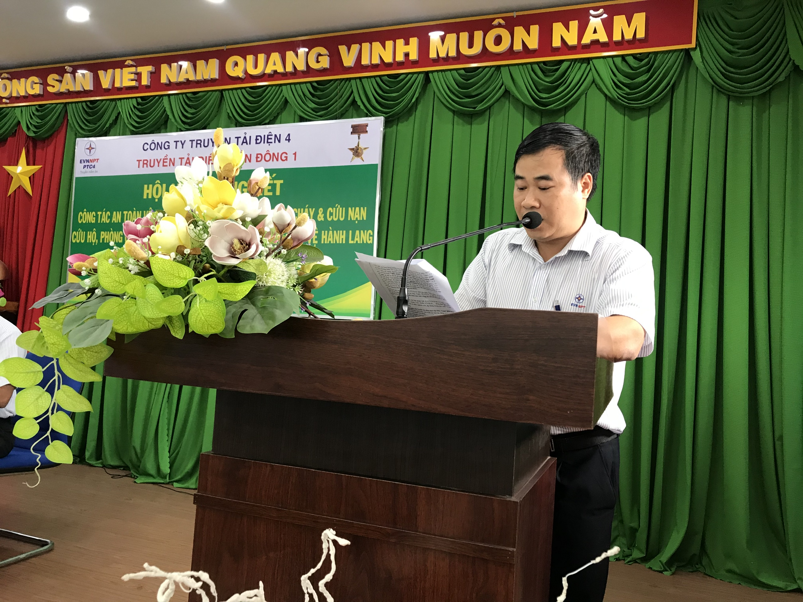 Tham dự Hội nghị có Ông Trịnh Đình Chính – Bí thư Chi bộ, Giám đốc, Chủ tịch Hội đồng ATVSLĐ TTĐMĐ và ông Đinh Văn Thành - Chủ tịch Công đoàn, phó Chủ tịch Hội đồng ATVSLĐ TTĐMĐ1 đồng chủ trì Hội nghị. Tham dự Hội nghị còn có sự hiện diện của các đồng chí trong Ban Giám đốc, Bí thư Đoàn thanh niên, các Trưởng phòng nghiệp vụ, Trưởng các Đội, Trạm, tổ TTLĐ, Cán bộ an toàn, Cán bộ Kỹ thuật phụ trách PCCC, phụ trách BVHLATLĐCA; Cán bộ y tế Truyền tải; Cán bộ phụ trách truyền thông; Tổ trưởng công đoàn, ATVSV các đơn vị.