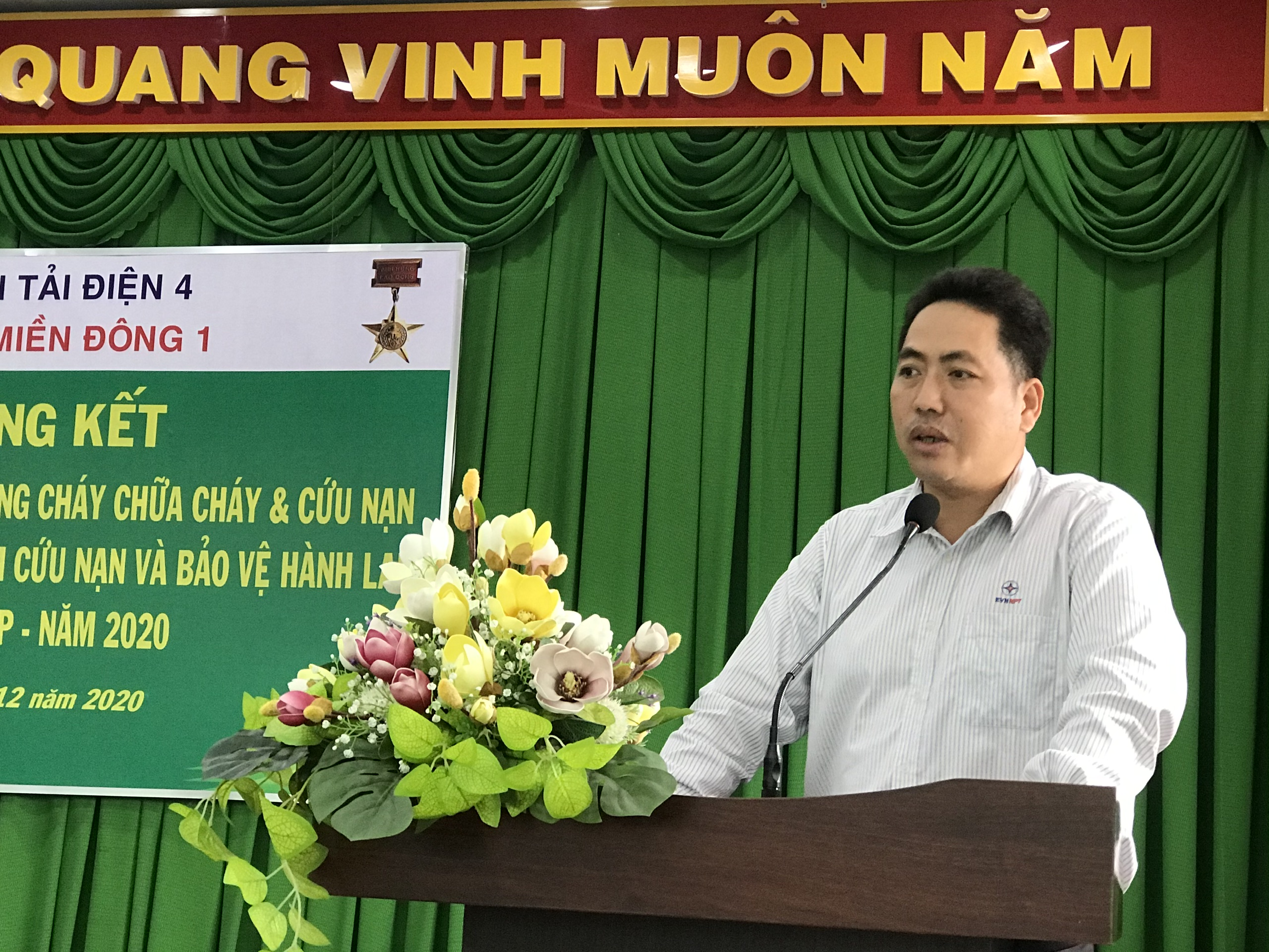 Báo cáo tổng kết công tác ATVSLĐ năm 2020 tại HN của ông Đặng Ngọc Triều – Trưởng P. Kỹ thuật.