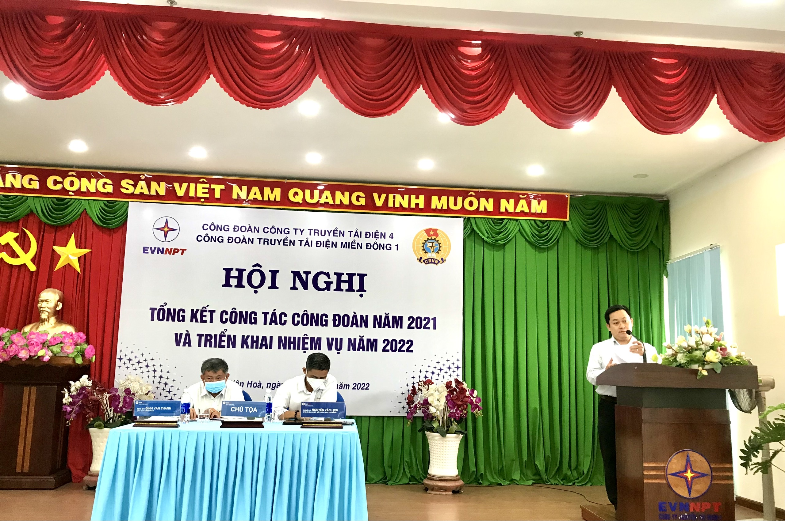 Ông Nguyễn Phương Nam đã phát biểu ghi nhận và đánh giá cao thành tích hoạt động năm 2021 của Công đoàn và toàn thể đoàn viên công đoàn TTĐMĐ1. Bên cạnh đó Chủ tịch cũng nêu ra những ý kiến chỉ đạo sâu sát, tập trung vào các nội dung trọng tâm như; phối hợp với chuyên môn tiếp tục đẩy mạnh các hoạt động phối hợp, xây dựng mối quan hệ lao động hài hòa, ổn định để góp phần hoàn thành thắng lợi nhiệm vụ chính trị của đơn vị và Công ty. Đồng chí yêu cầu đơn vị phải cụ thể hóa Nghị quyết 02-NQ/TW, ngày 12/6/2021 của Bộ Chính trị về đổi mới tổ chức và hoạt động của Công đoàn trong tình hình mới. Tổ chức Đại hội Công đoàn cơ sở thành viên nhiệm kỳ 2022 với mục tiêu xây dựng đội ngũ Cán bộ lãnh đạo Công đoàn có tâm huyết để đồng hành cùng chuyên môn nâng cao hiệu quả trong hoạt động Công đoàn; đồng chí nhấn mạnh việc thực hiện chủ đề năm 2022 phải chú ý đến hoạt động của mạng lưới an toàn vệ sinh viên, xây dựng và phát triển văn hóa an toàn trong Đoàn viên công đoàn. Bên cạnh việc bảo vệ quyền lợi hợp pháp chính đáng cho CNVCLĐ thông qua Thỏa ước Lao động tập thể và Nội quy Lao động thì đơn vị phải chú trọng nắm bắt tâm tư nguyện vọng của Người lao động để đồng hành nhằm phát huy truyền thống đoàn kết, tương thân tương ái…