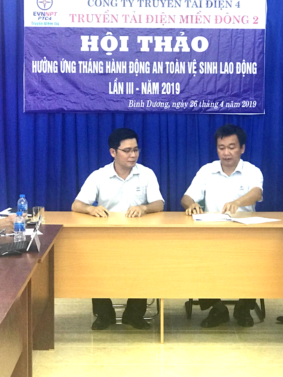 Ngày 26/04/2019 tại hội trường Đội Truyền tải điện Thủ Dầu Một, Truyền Tải Điện Miền Đông 2 đã tổ chức Hội thảo Tháng hành động ATVSLĐ dưới sự chủ trì của Ông: Nguyễn Minh Dũng - Giám đốc TTĐMĐ2 -Trưởng ban chỉ đạo Tháng hành động ATVSLĐ lẩn III năm 2019.