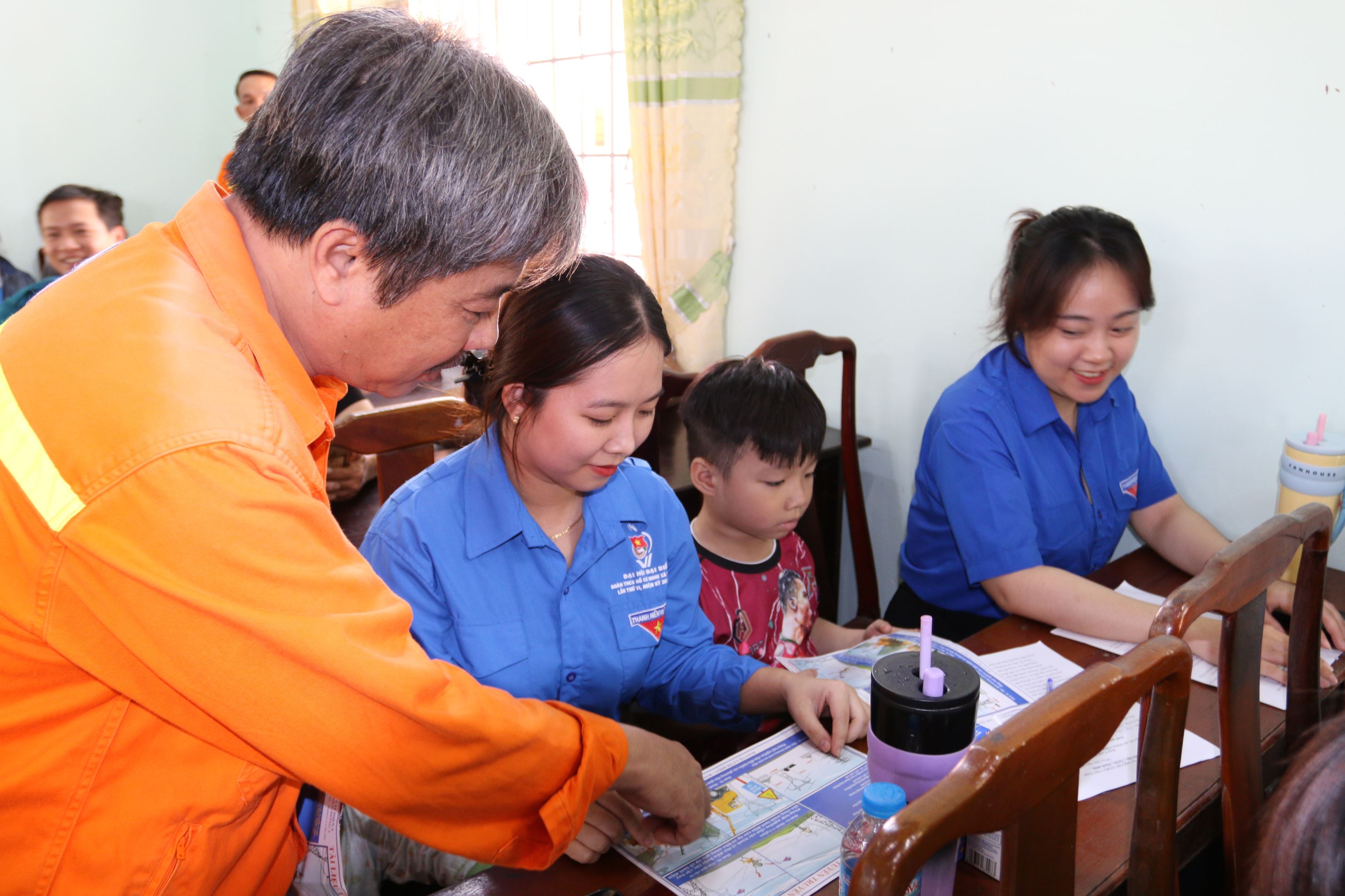 CBCNV Đội Đồng Xoài cảnh báo về các hành vi vi phạm hành lang lưới điện cho lực lượng đoàn viên thanh niên của xã Đồng Tâm.