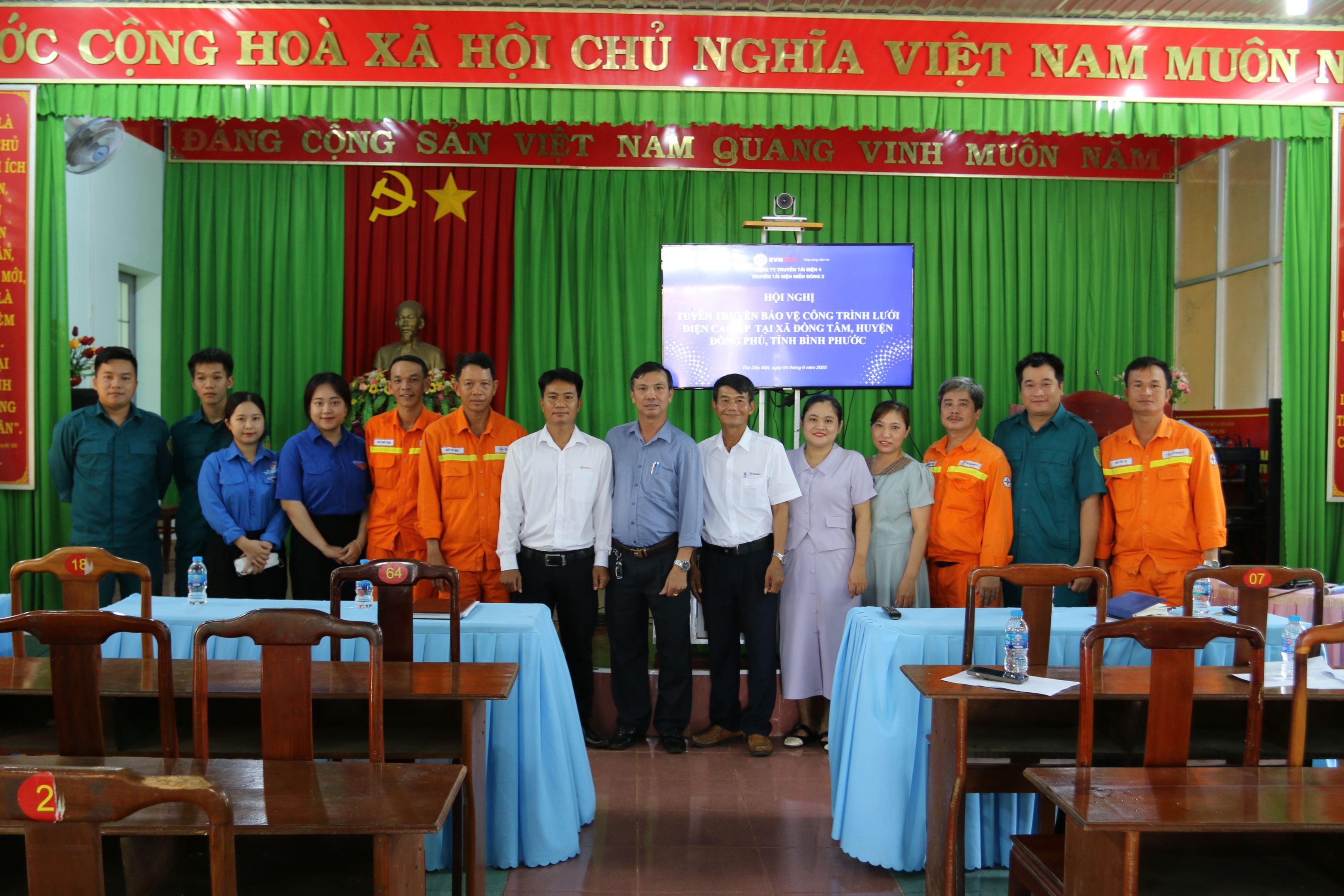 Tham dự hội nghị có ông Bùi Văn Kiên, Phó Chủ tịch xã cùng với các đại diện hội phụ nữ, đoàn Thanh niên, Lãnh đạo UBND xã Đồng Tâm, Trưởng các ấp và hơn 100 hộ dân; Đại diện Truyền tải điện Miền Đông 2 có ông Bùi Văn Tùng - Đội phó Đội Truyền tải điện Đồng Xoài, là đơn vị quản lý vận hành đường dây truyền tải đi qua địa phương.