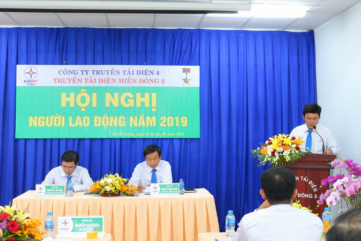 Về phía Lãnh đạo Truyền tải điện Miền Đông 2, đồng chí Nguyễn Minh Dũng – Bí thư chi bộ - Giám đốc; đồng chí Nguyễn Tấn Hậu – Chủ tịch Công đoàn – Phó Giám đốc cùng chủ trì Hội nghị và giải đáp các ý kiến thắc mắc được tổng hợp từ Người lao động ở các đơn vị trực thuộc.