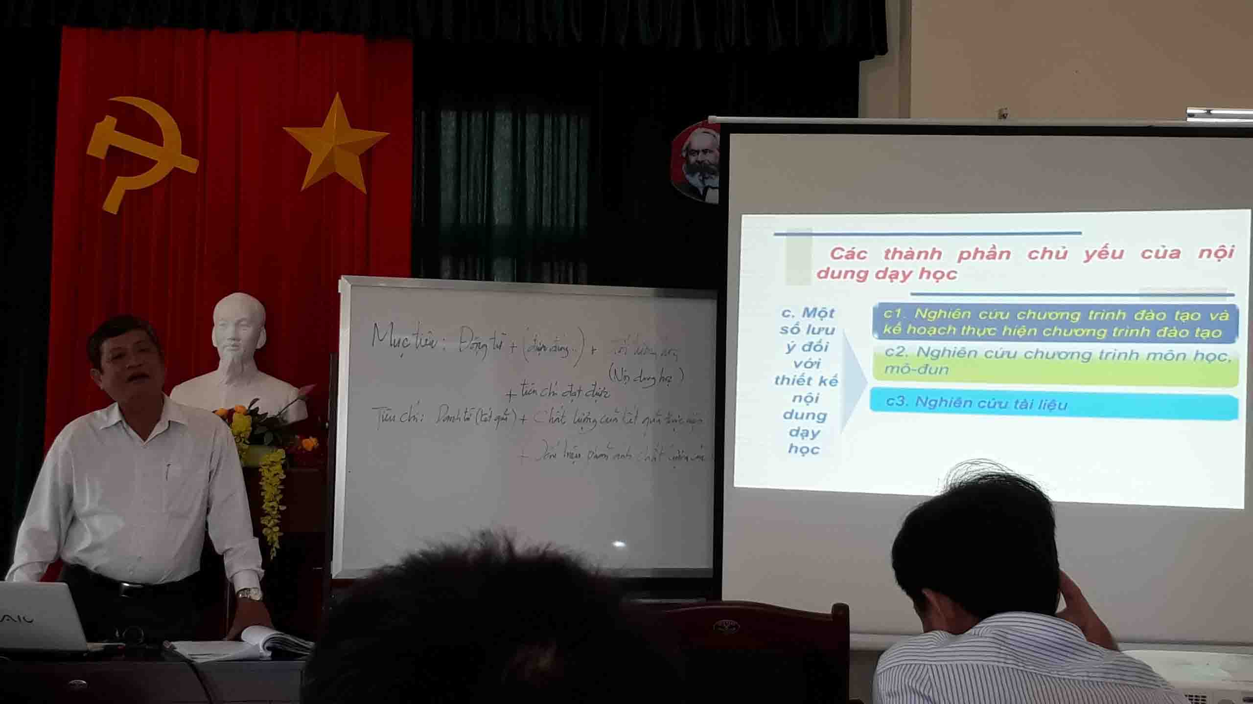 Trong ngày 12/9/2019, ở phần biên soạn bài giảng tích hợp ThS. Nguyễn Công Đắc đã hướng dẫn cho các học viên về cơ sở xây dựng giáo án dạy học tích hợp, cách thiết kế giáo án tích hợp và biên soạn giáo trình theo mô-đun hoàn chỉnh. Tiếp theo, trong ngày 16/9/2019, ThS. Nguyễn Minh Trung đã mang đến cho học viên nhiều kiến thức về các bước thiết kế phiếu hướng dẫn luyện tập, thiết kế công cụ đánh giá kiến thức và đánh giá kỹ năng. Cuối cùng, trong ngày 17/9/2019, ThS. Nguyễn Minh Trung tiếp tục giới thiệu đến các học viên các tiêu chí đánh giá bài giảng tích hợp; buổi chiều cùng ngày, TS. Nguyễn Văn Minh đã trực tiếp giao lưu, trao đổi các kinh nghiệm trong dạy học tích hợp đến toàn thể học viên.