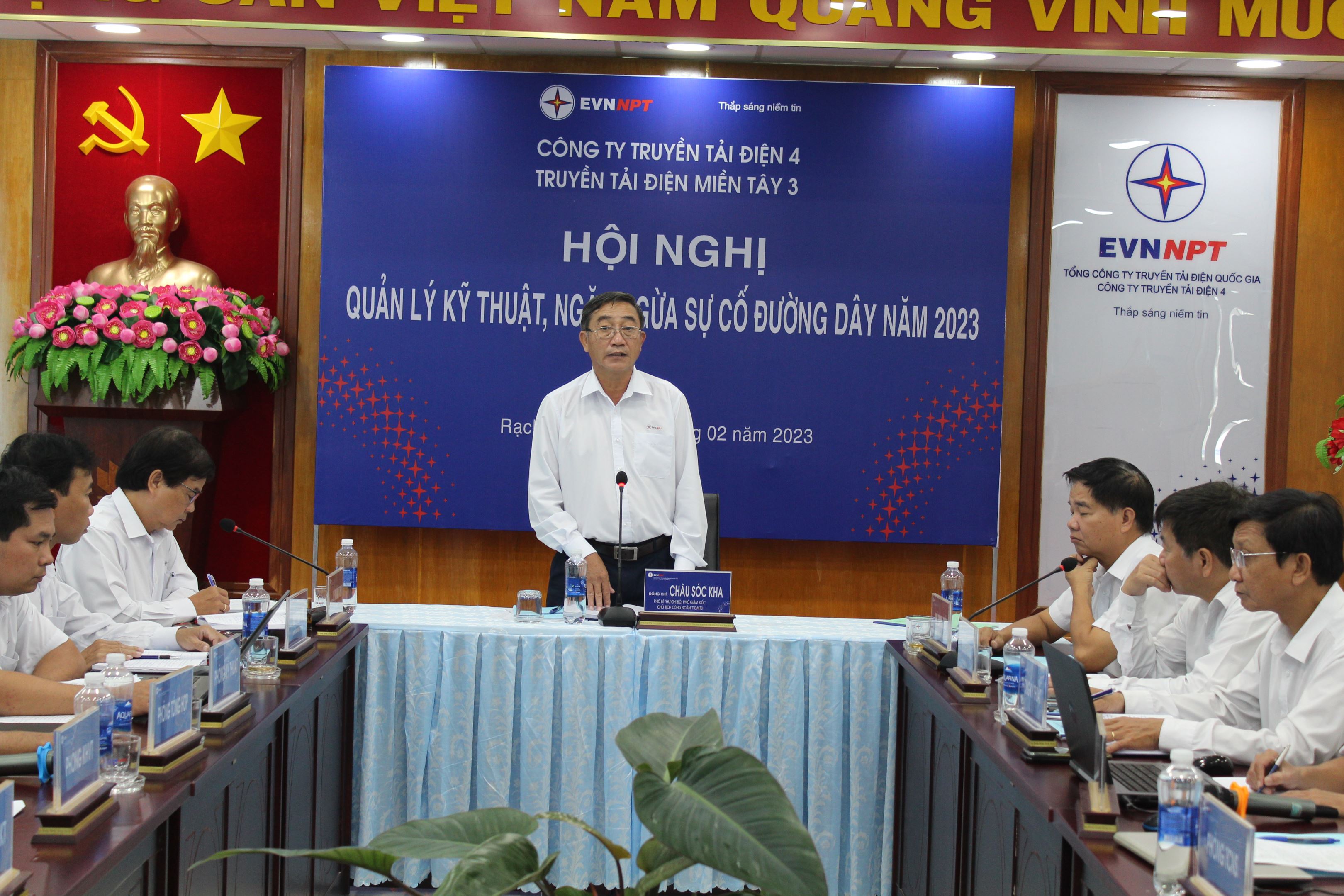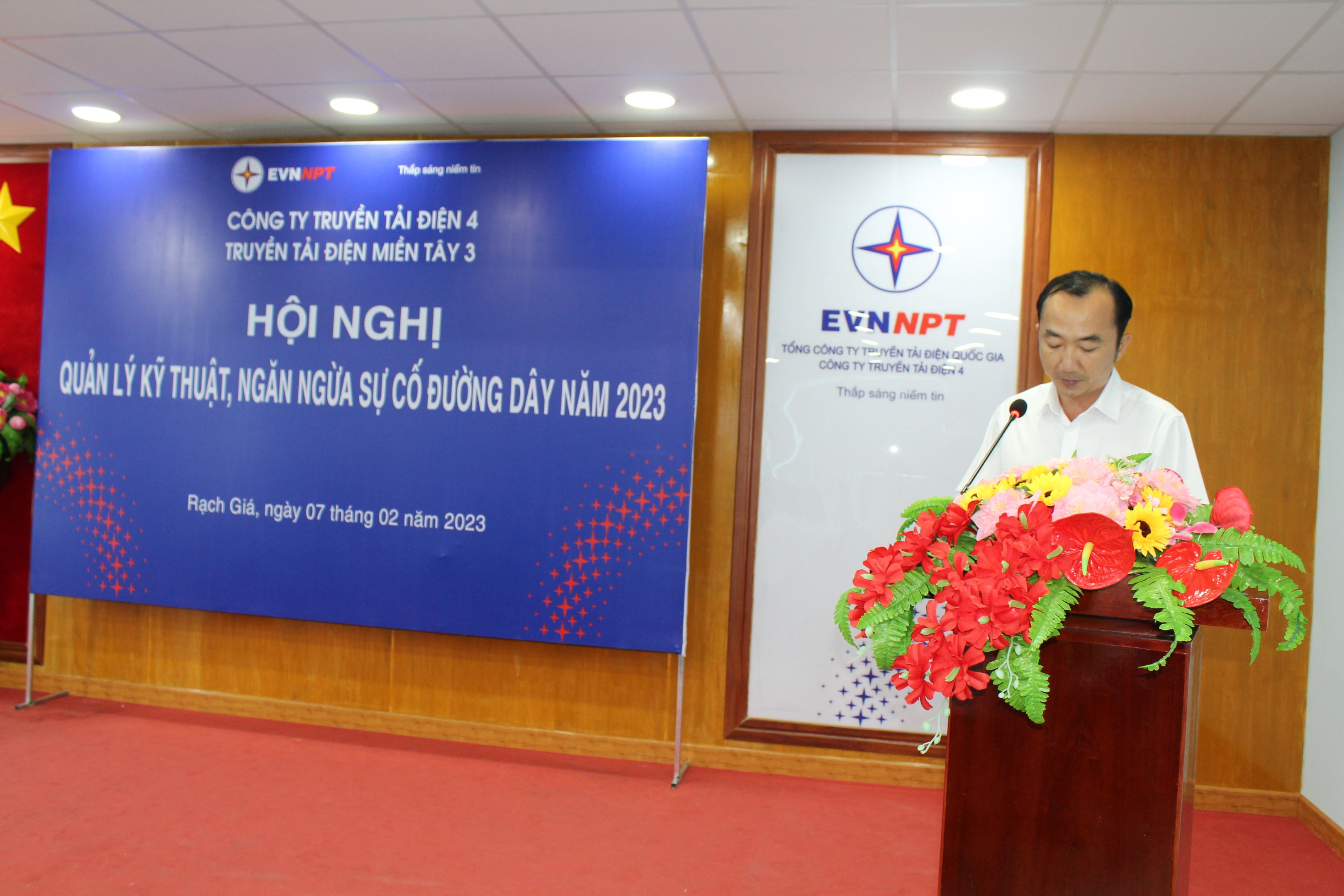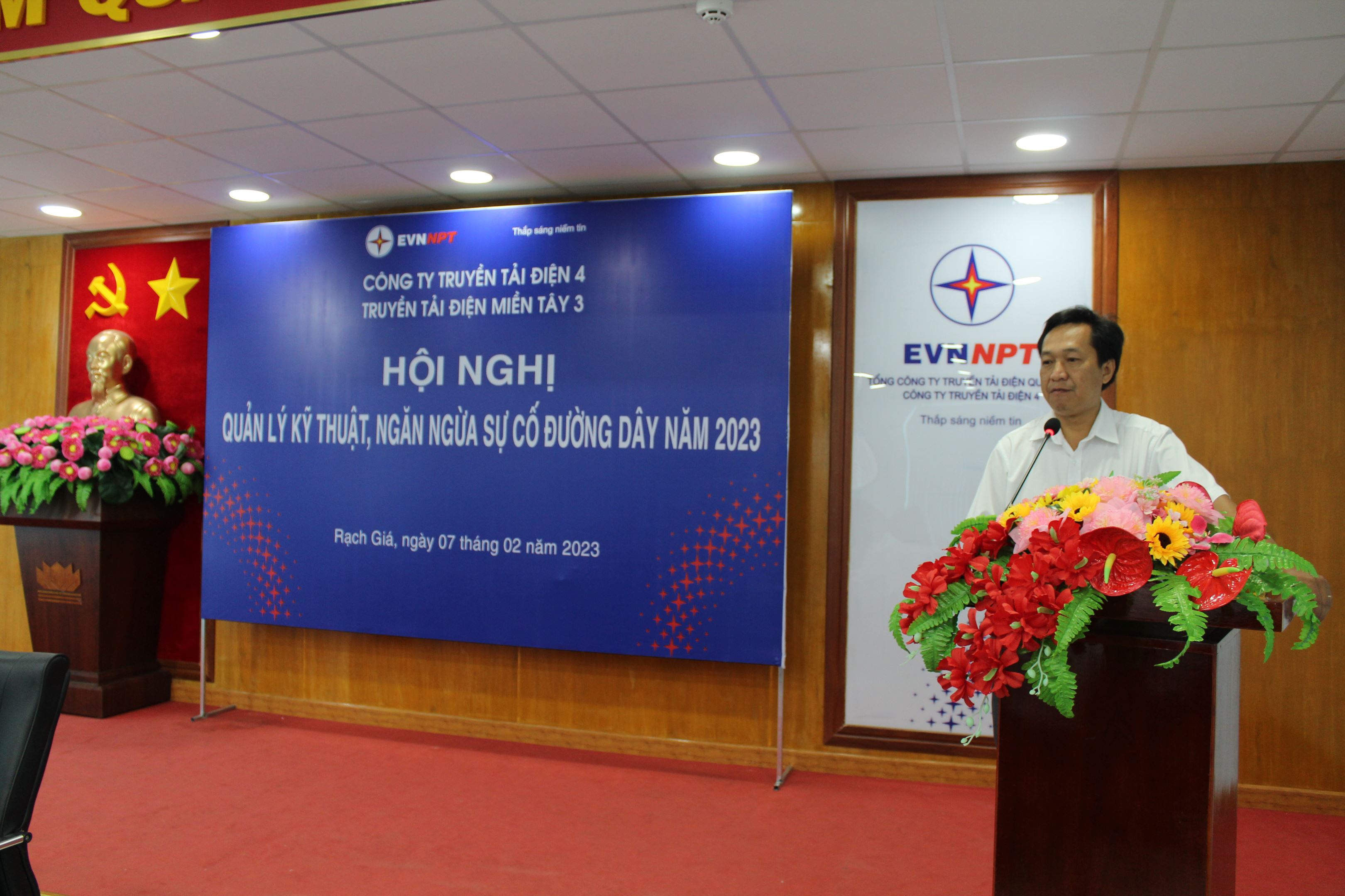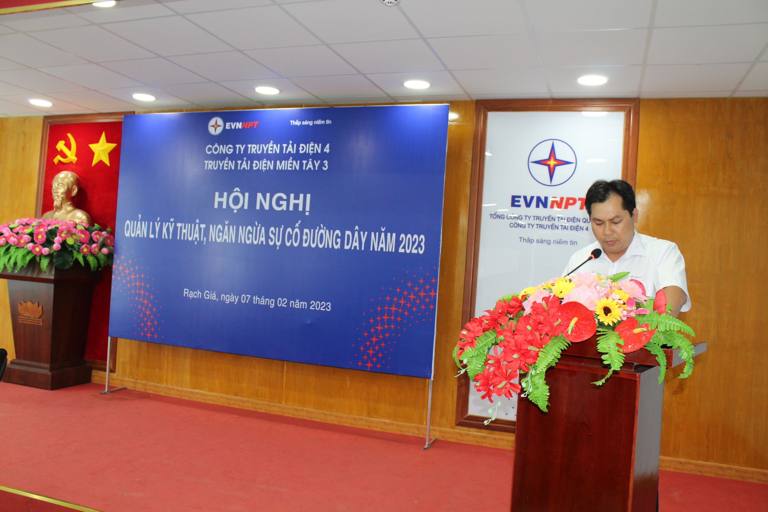 Được sự phân công của chủ trì, đ/c Trần Nam Thái - Trưởng phòng kỹ thuật báo cáo công tác quản lý kỹ thuật đường dây năm 2022, theo đó Truyền tải điện Miền Tây 3 được Công ty Truyền tải điện 4 giao nhiệm vụ quản lý vận hành hệ thống lưới điện truyền tải có cấp điện áp 220kV trên địa bàn của 03 tỉnh: Kiên Giang, An Giang và Cà Mau, và một phần tỉnh Bạc Liêu, bao gồm 19 phát tuyến đường dây 220kV với tổng chiều dài là 973,664 km (so với cùng kỳ tăng 122,794 km đường dây). Báo cáo đã chỉ ra giảm số vụ sự cố 30% so với năm trước, tuy nhiên vẫn vượt chỉ tiêu sự cố thoáng qua đường dây 220kV, số vụ sự cố do sét vẫn còn cao 4 vụ chiếm 57,1 % và số vụ sự cố do phóng điện cách điện chiếm 42,9%, số vụ sự cố do vi phạm hành lang đã giảm hoàn toàn 100%. Về phương hướng năm 2023 đồng chí Trưởng phòng kỹ thuật đã nêu 08 nhóm giải pháp ngăn ngừa sự cố đường dây năm 2023 trong đó tập trung nhóm giải pháp ngăn ngừa phóng điện sứ, giảm thiểu sự cố do sét đã xảy ra trong năm 2022. Nhóm giải pháp ngăn ngừa sự cố do tuột lèo, đứt dây chống sét, nhóm giải pháp ngăn ngừa sự cố do vi phạm hành lang, nhóm giải pháp ngăn ngừa sự cố do cháy, nhóm giải pháp kỹ thuật, nhóm giải pháp thay thế thiết bị không đảm bảo vận hành và nhóm giải pháp ngăn ngừa do thi công.
