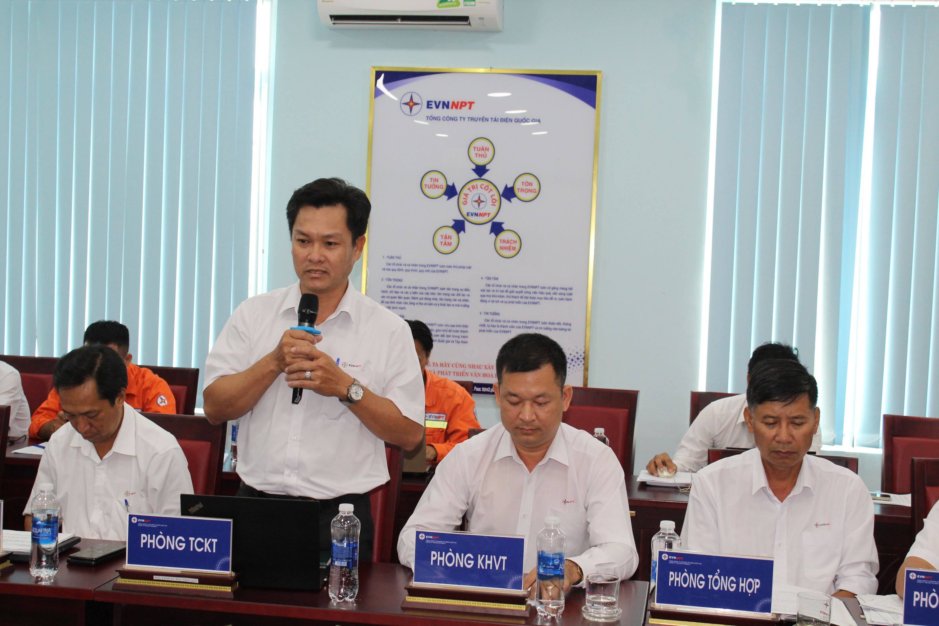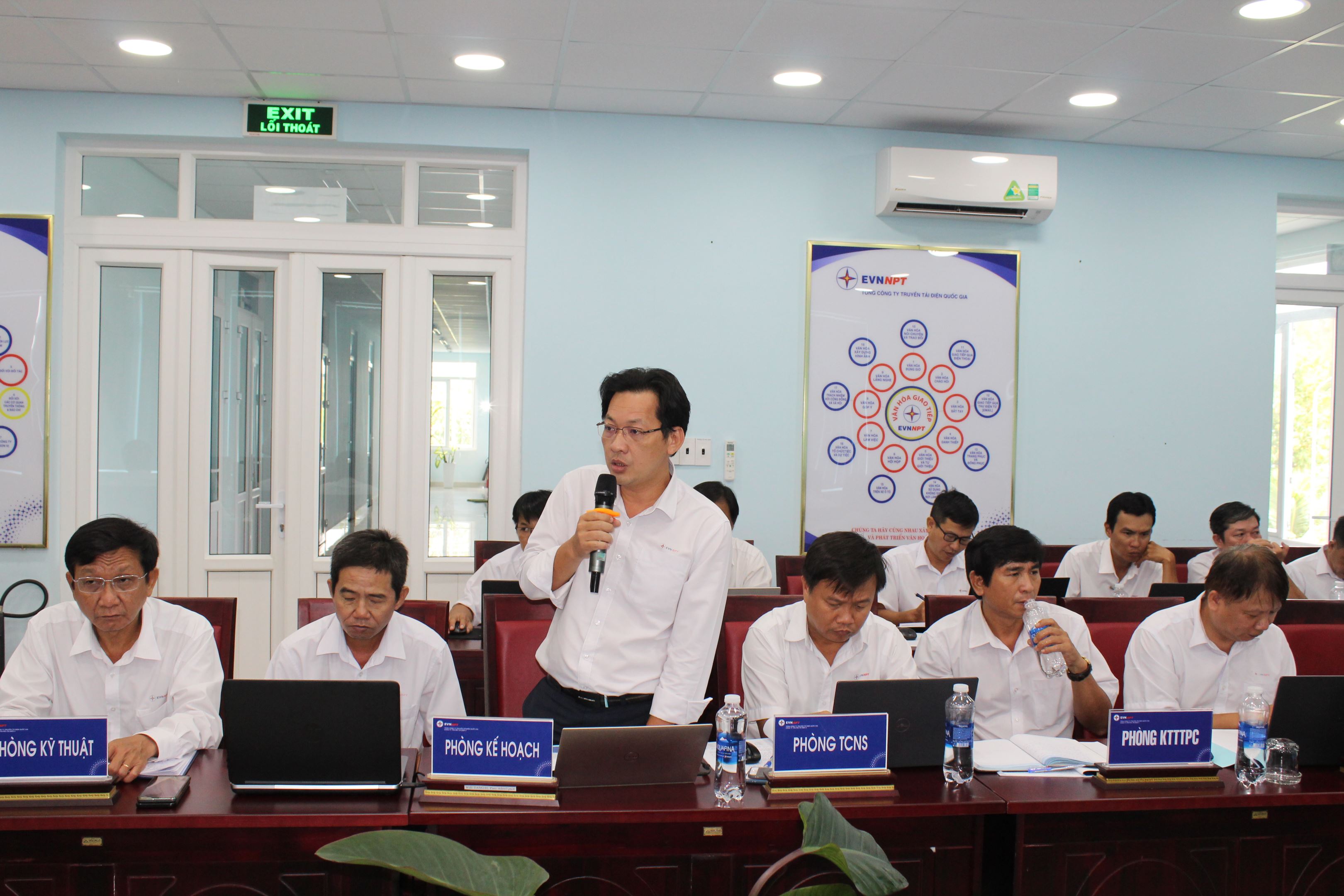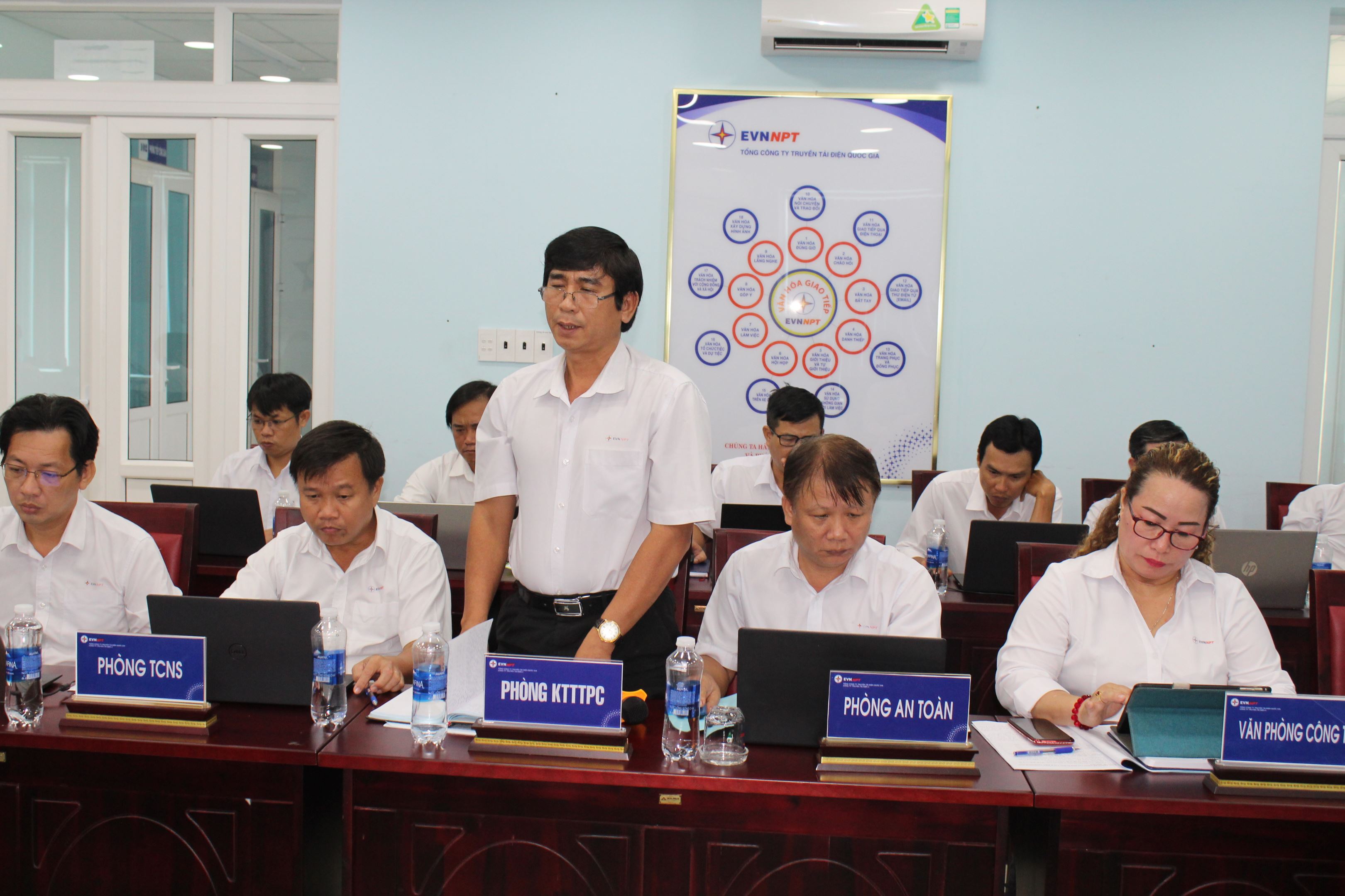 Đ/c Huỳnh Hữu Phúc - Trưởng phòng Kỹ thuật phát biểu tại hội nghị vể giải pháp kỹ thuật trong quản lý vận hành, ngăn ngừa sự cố đường dây 2023