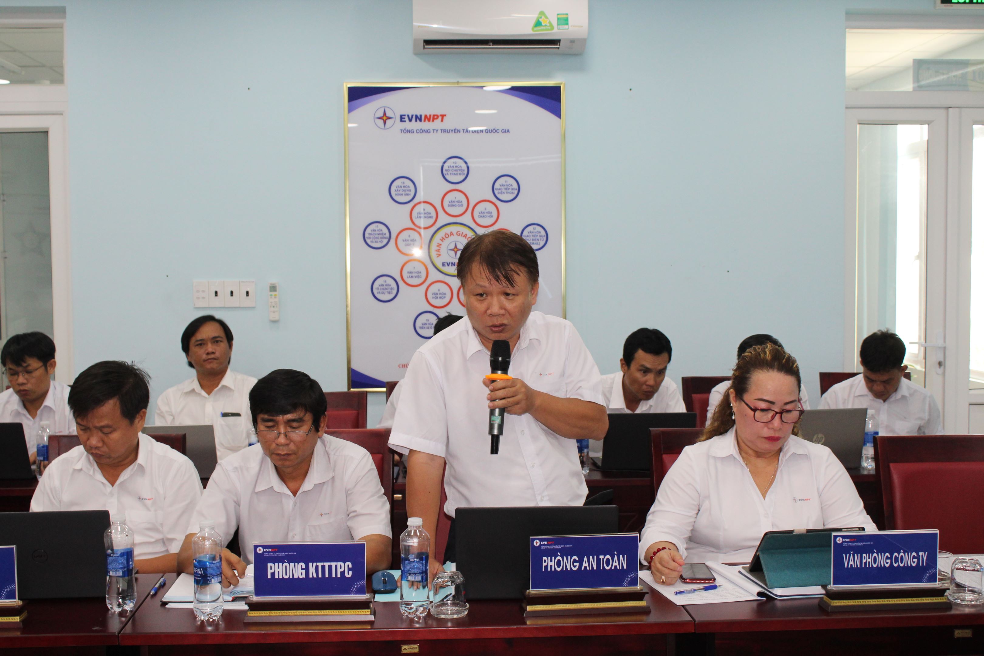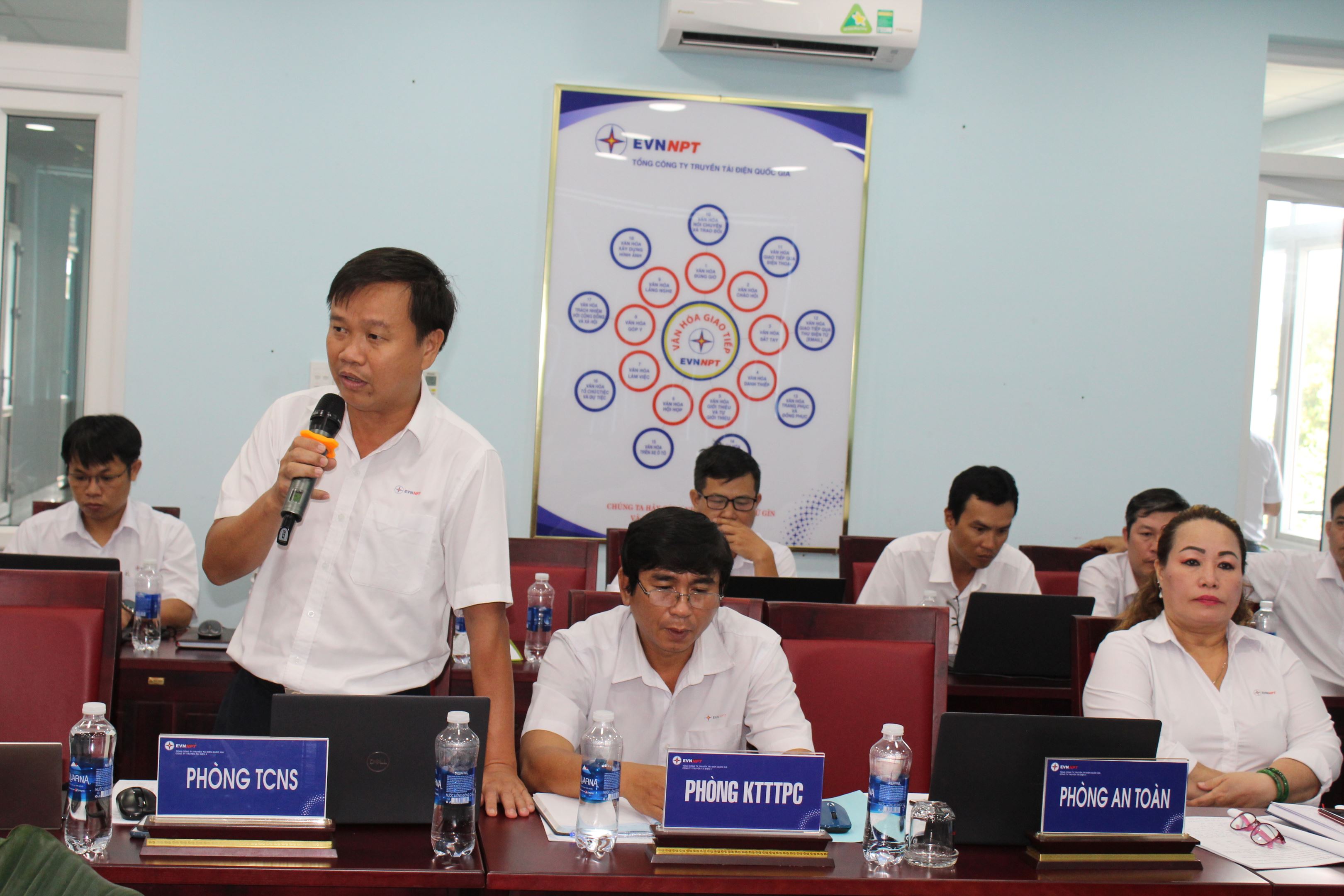 Đ/c Phạm Anh Tuấn- Trưởng phòng An toàn Công ty phát biểu tại hội nghị về giải pháp an toàn trong lao động và ngăn ngừa sự cố đường dây.