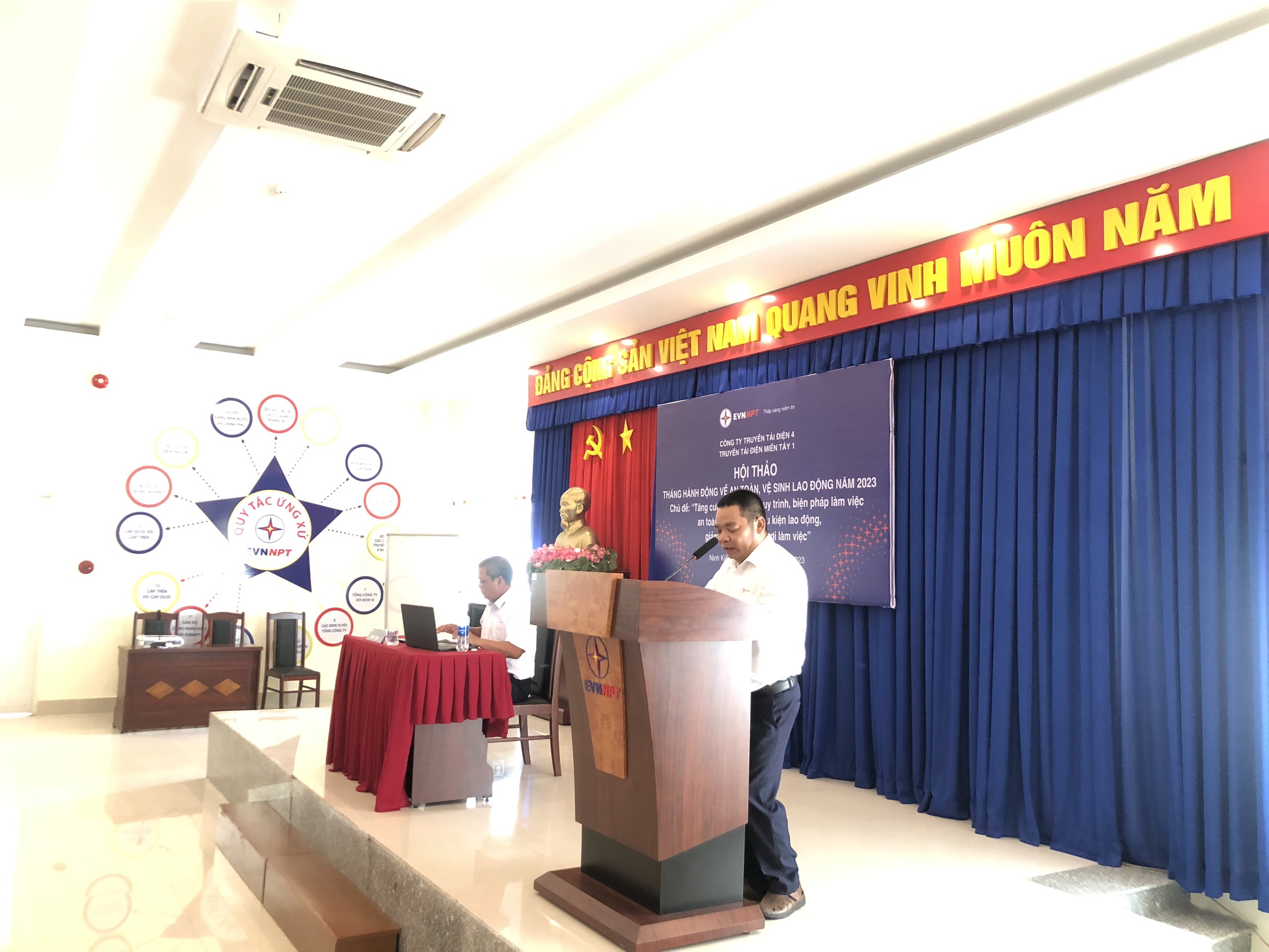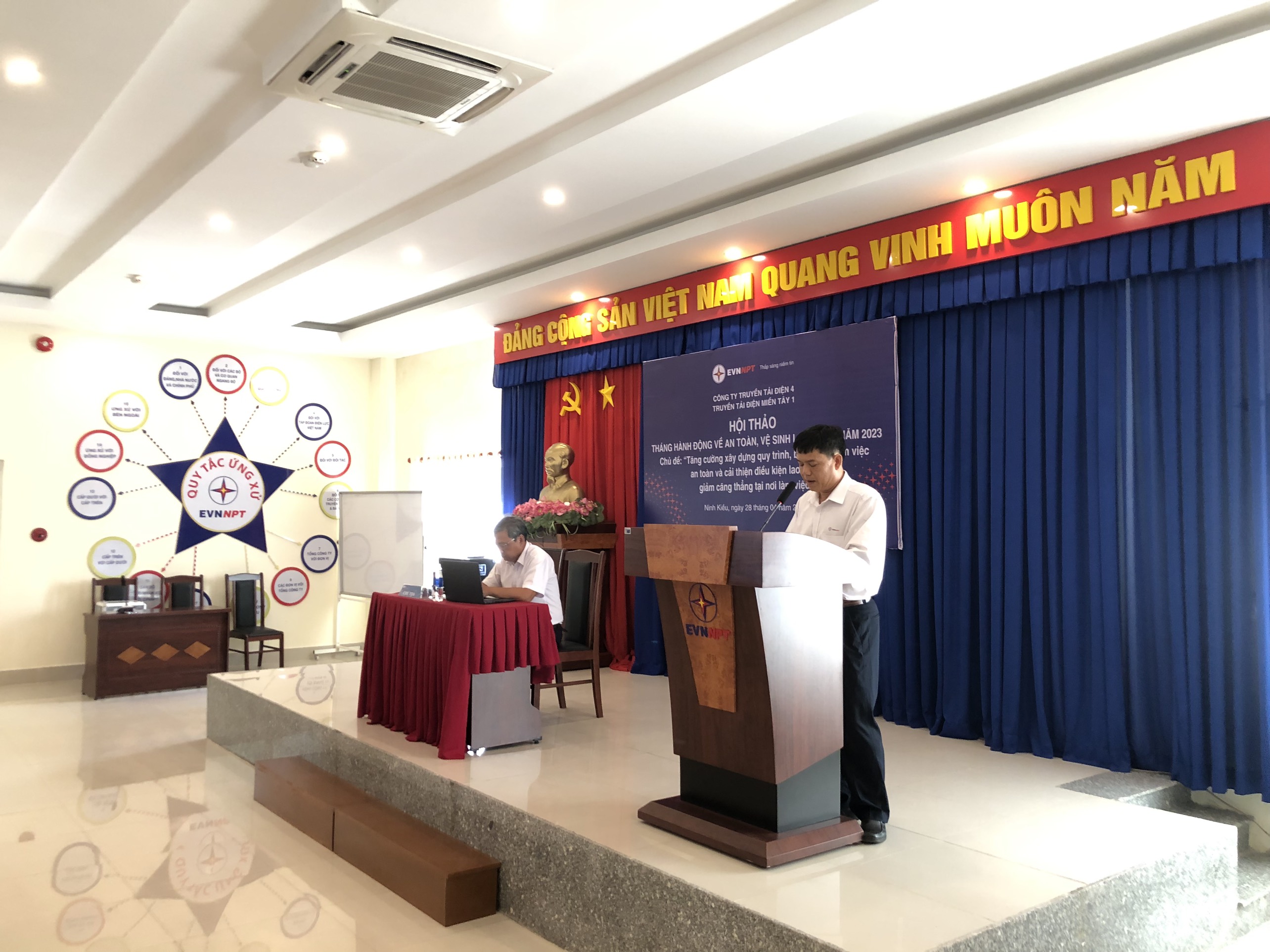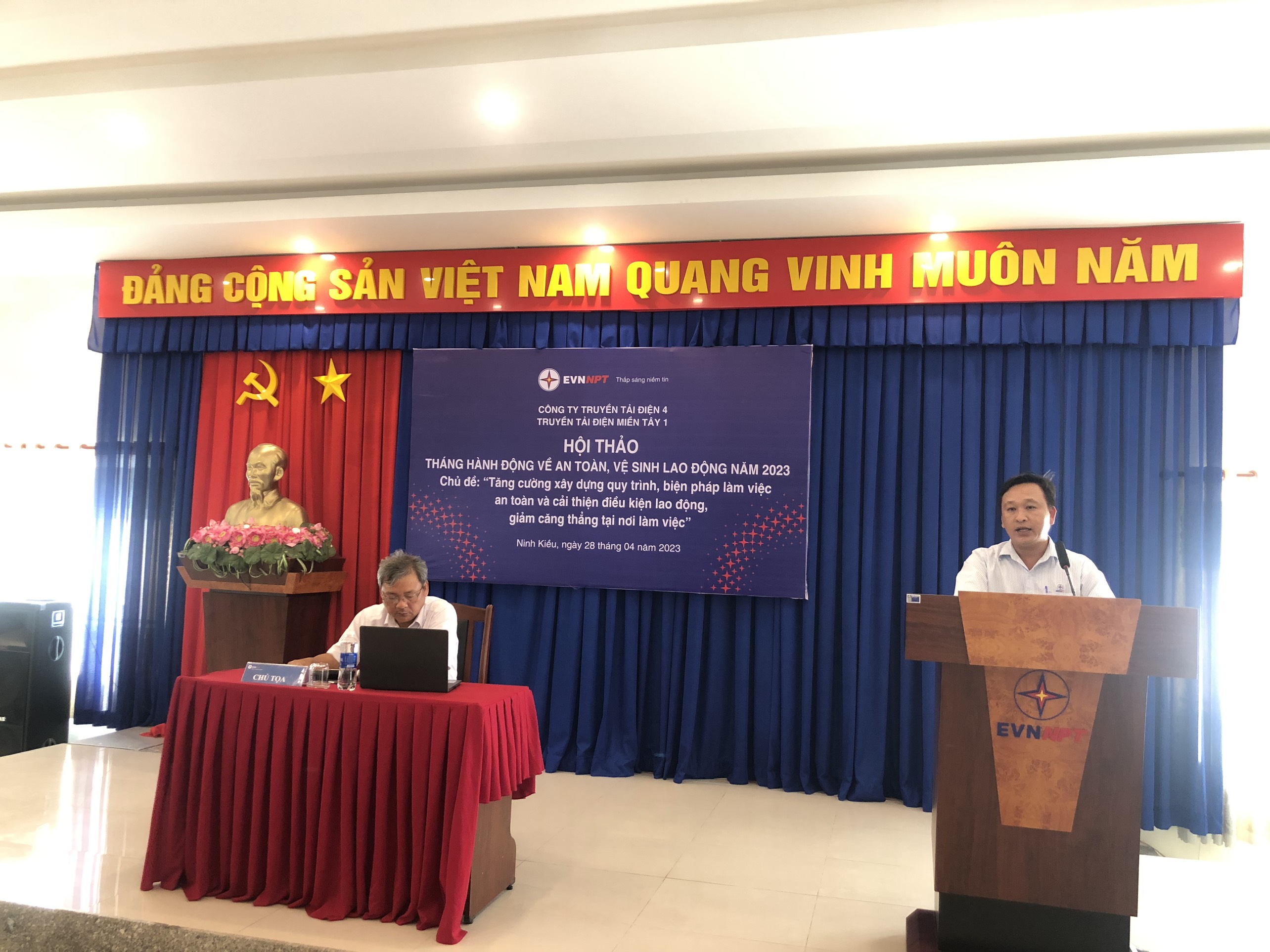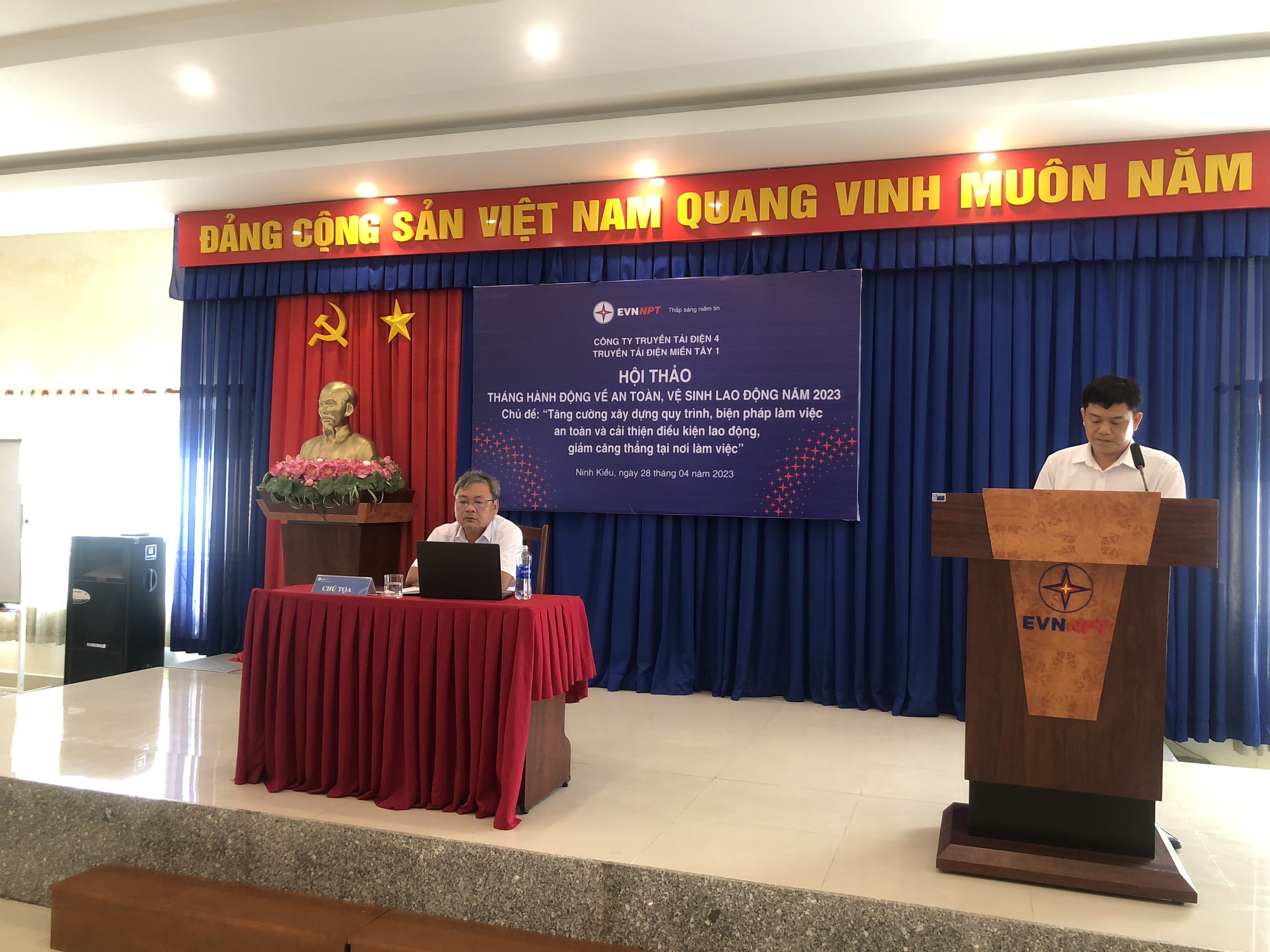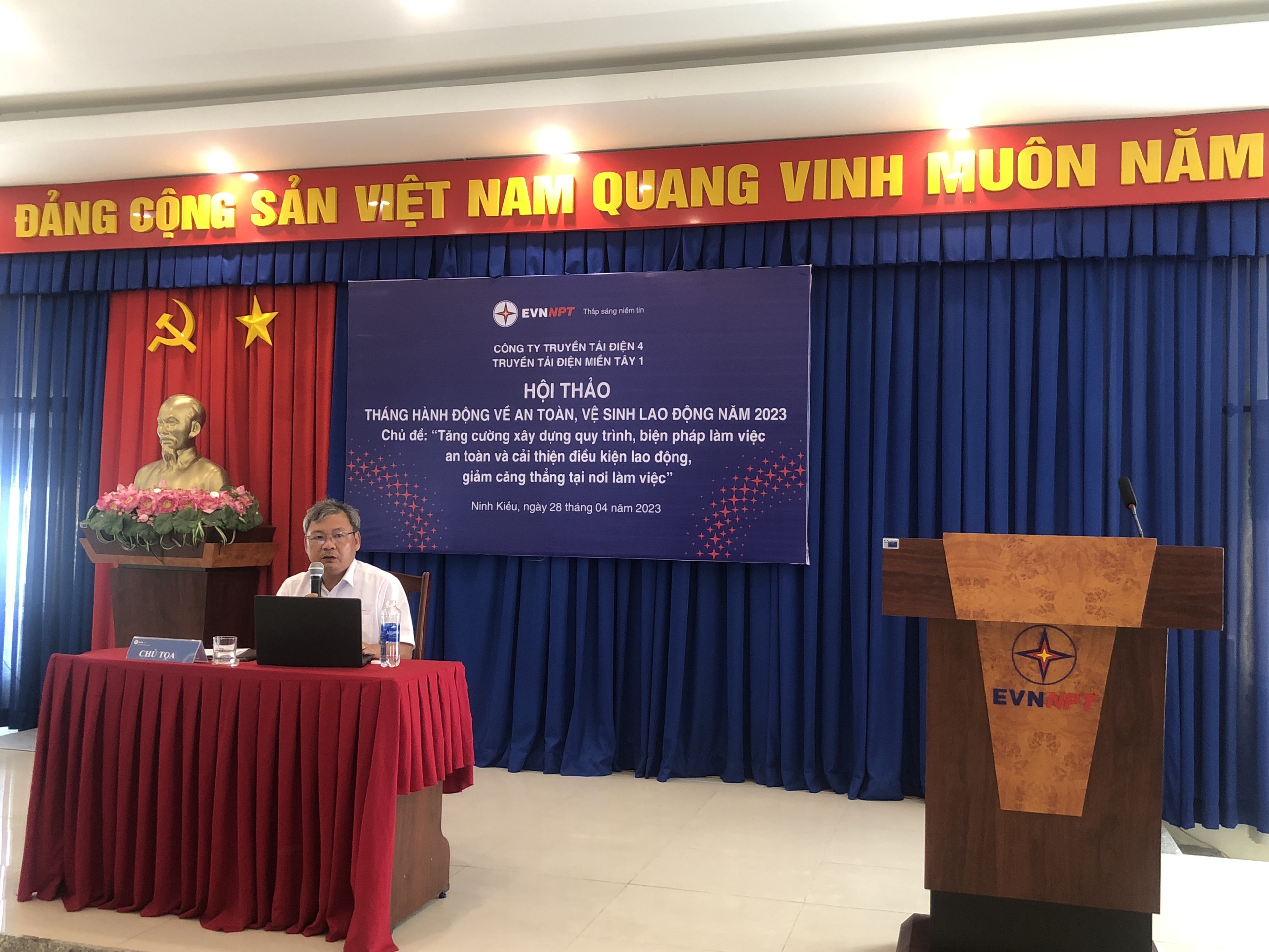 Ông Trần Quốc Hiệu – Bí thư Đảng bộ Bộ phận, Giám Đốc, Chủ tịch Hội đồng An toàn vệ sinh viên TTĐ Miền Tây 1 – Chủ trì Hội thảo, phát biêu chỉ đạo