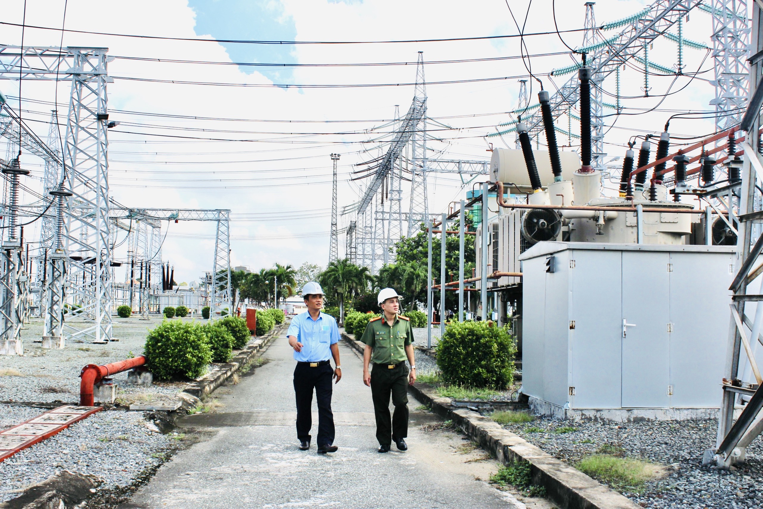 Đại diện phòng An ninh Kinh tế - Công an Thành phố Hồ Chí Minh kiểm tra phương án đảm bảo cung cấp điện trong dịp lễ Quốc khánh 02/9/2022 tại Trạm biến áp 500kV Phú Lâm