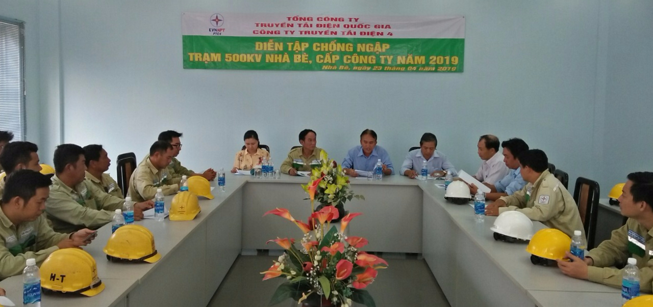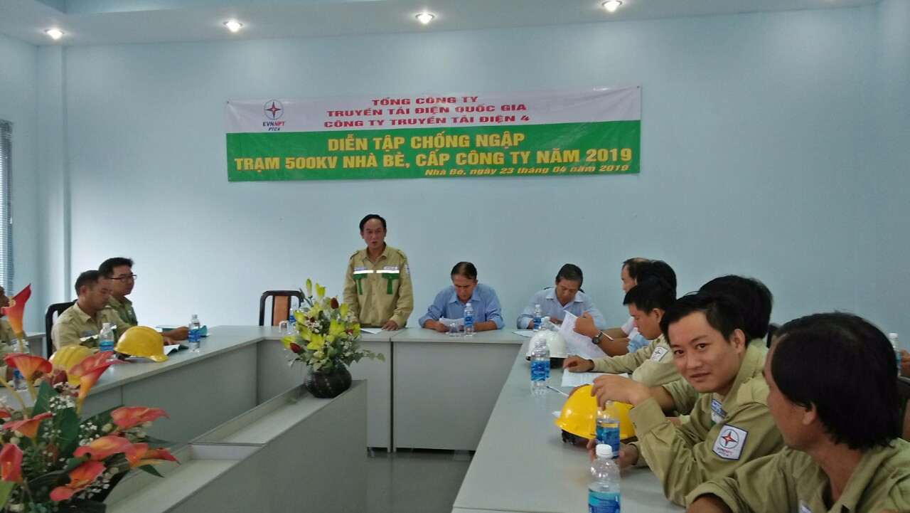 Lúc 08 giờ 30 phút, lệnh diễn tập được phát đi, ông Đỗ Đức Tài – Đội trưởng đội xung kích PCTT&TKCN trạm 500kV Nhà Bè đã chỉ đạo các CBCNV đang trực ca tiến hành các giải pháp đúng theo phương án PCTT&TKCN được duyệt để bơm nước thoát ra bên ngoài, đồng thời trạm Nhà Bè đã báo cáo cho ông Nguyễn Quang Thảo – Phó Giám đốc TTĐHCM, Trưởng Ban chỉ huy PCTT&TKCN TTĐHCM về tình hình ngập nước tại sân ngắt 500kV, 220kV, các hầm cáp, PĐH, nhà bay housing, nhà hợp bộ và các hầm dầu sự cố.