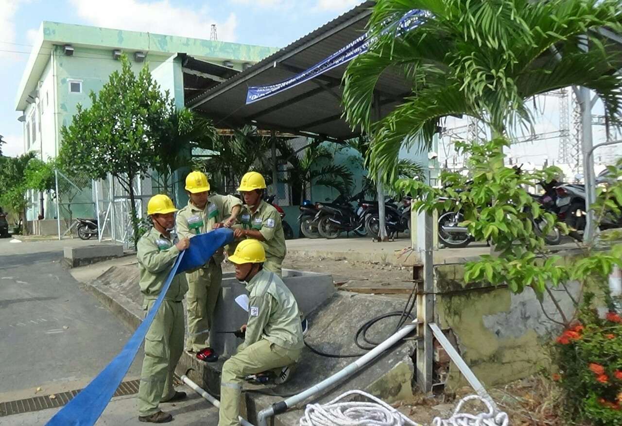 Sau khi nhận chỉ đạo, Đội Truyền tải điện Nhà Bè đã nhanh chóng tăng cường lực lượng, máy móc di động, dụng cụ đến trạm Nhà Bè và thực hiện bơm nước ra các hướng ngoài trạm theo phương án PCTT&TKCN. Trong đó, đội Nhà Bè đã tăng cường 03 bơm di động, đắp bao cát tại khu vực cổng ngăn nước tràn vào trạm.