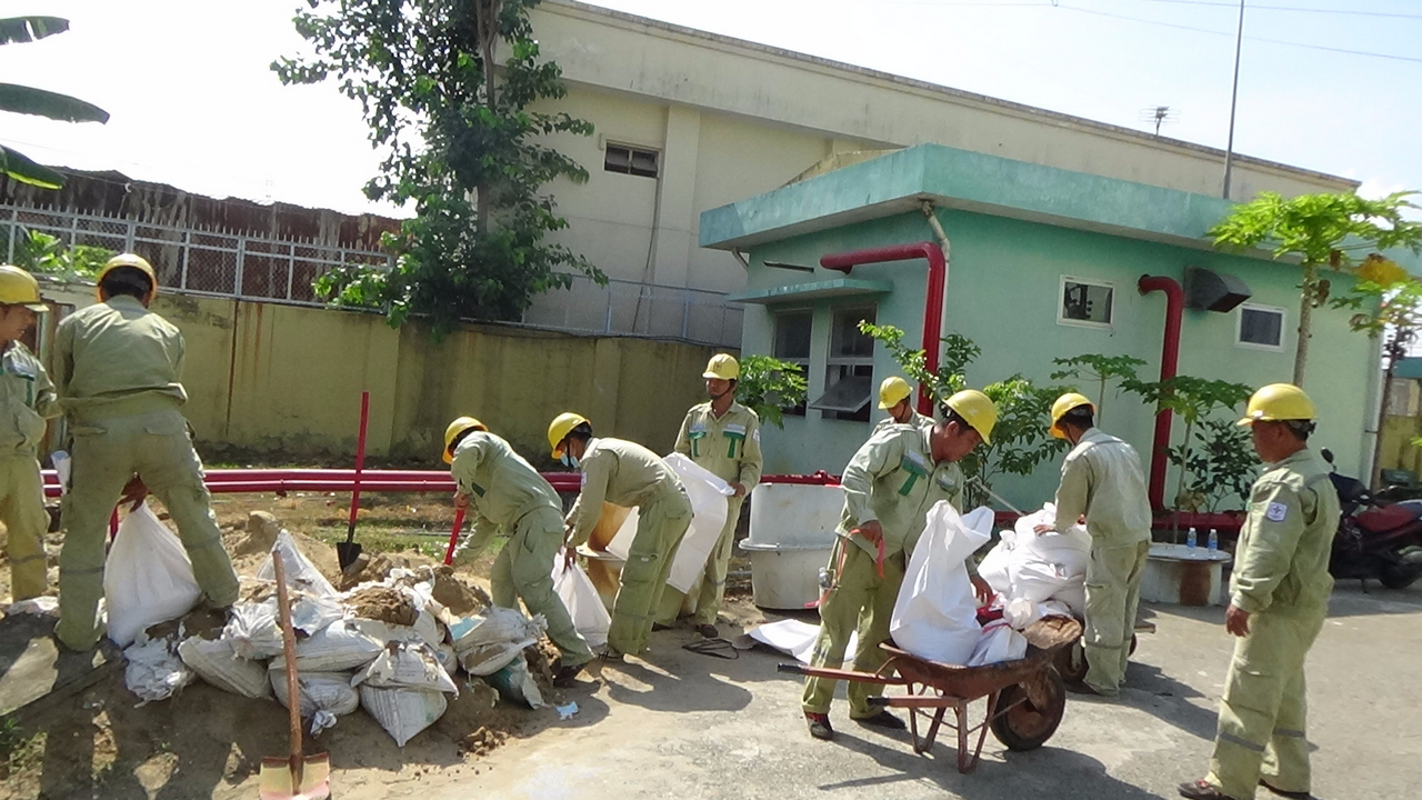 Tập thể CBCNV chuẩn bị diễn tập chống ngập trạm 500kV Nhà Bè tại hiện trường