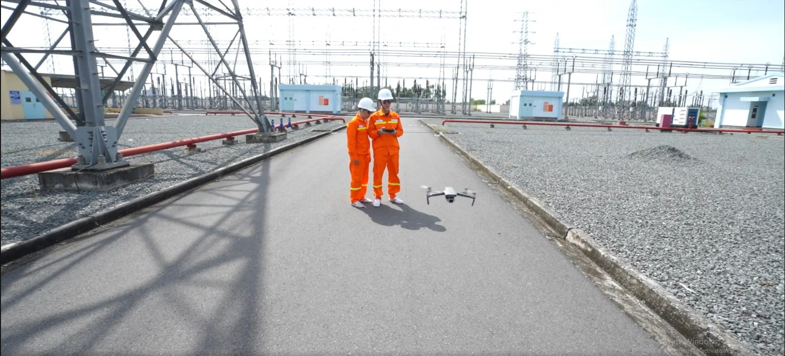 Nhân viên vận hành Trạm 500kV Đức Hòa kiểm tra thiết bị bằng UAV.