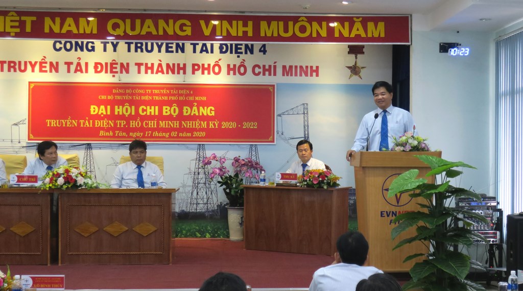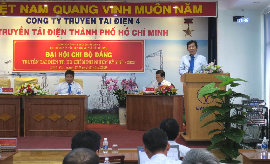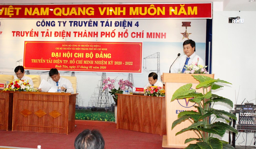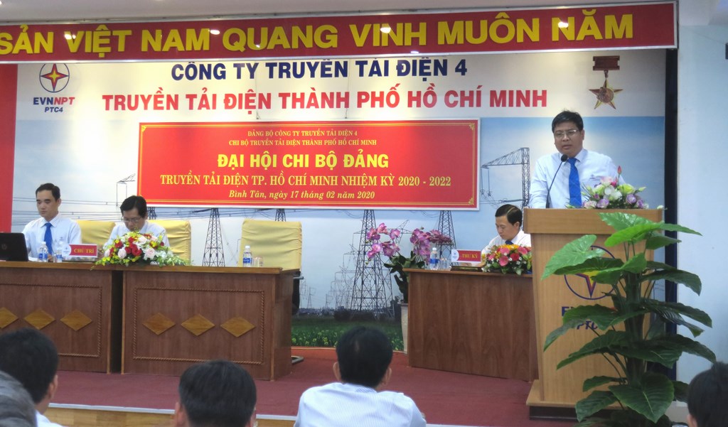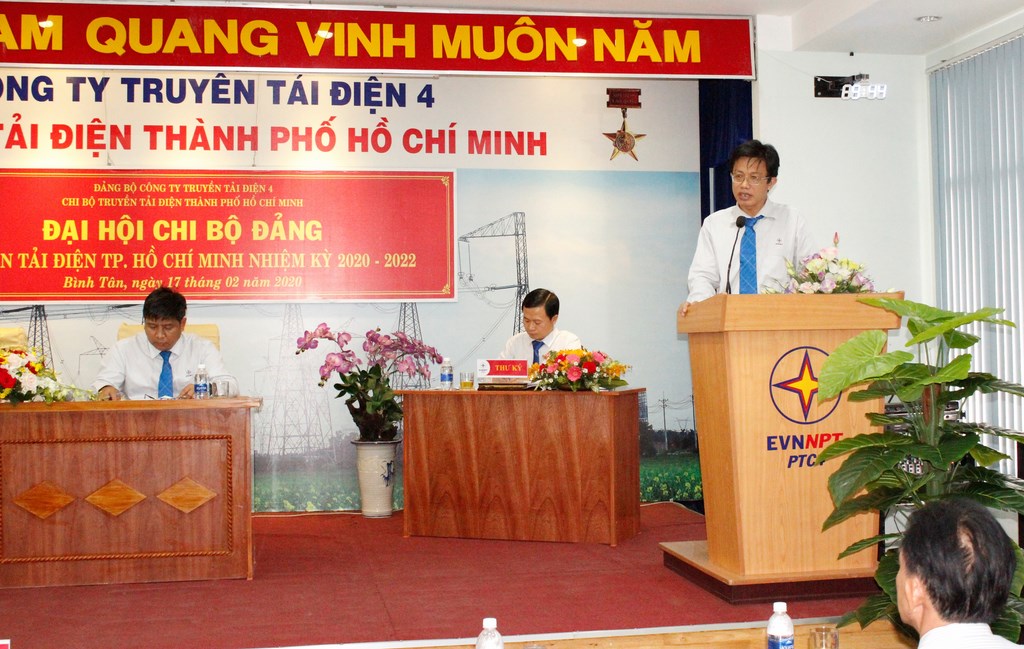Phát biểu chỉ đạo tại Đại hội, đồng chí Võ Đình Thủy – UVBTV Đảng ủy EVNNPT, Bí thư Đảng ủy, Giám đốc PTC4 nhận xét là Chi bộ TTĐHCM nghiêm túc thực hiện công tác chuẩn bị và tổ chức Đại hội đúng theo quy định; đồng chí Võ Đình Thủy đã biểu dương những kết quả Chi bộ TTĐHCM đạt được trong nhiệm kỳ qua. Trên cơ sở đó, đề nghị các đồng chí đảng viên phát huy vai trò hạt nhân chính trị, tiên phong, gương mẫu, đoàn kết, sáng tạo tập trung thực hiện nhiệm vụ, kế hoạch sản xuất kinh doanh được giao. Sáng suốt lựa chọn đại biểu tham gia cấp ủy Chi bộ TTĐHCM nhiệm kỳ 2020-2022 đảm bảo uy tín, năng lực, lãnh đạo đơn vị quyết tâm hoàn thành xuất sắc nhiệm vụ chính trị, xây dựng đơn vị đoàn kết, phát triển. Đồng chí Võ Đình Thủy thay mặt Đảng bộ PTC4 cam kết hỗ trợ tích cực nhất cho Chi bộ TTĐHCM trong công tác lãnh đạo, chỉ đạo nhằm đưa TTĐHCM trở thành 01 trong các đơn vị đi đầu và đứng đầu trong khối các đơn vị Truyền tải điện, đúng như sự kỳ vọng của Chủ tịch Hội đồng Thành viên EVNNPT.