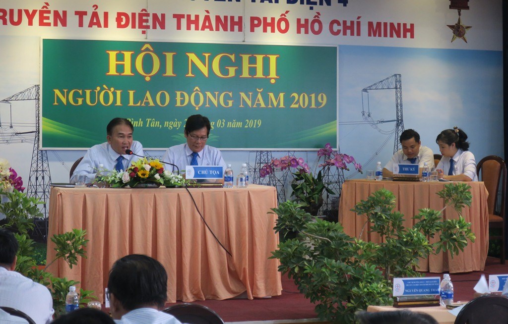 Bắt đầu buổi Hội nghị, ông Bùi Văn Hoàng, Bí thư chi bộ, Giám đốc Truyền tải chủ trì cùng Ban chấp hành Công đoàn đánh giá tình hình thực hiện Nghị quyết Hội nghị Người lao động năm 2018; Quán triệt sâu rộng và triển khai thực hiện có hiệu quả Nghị quyết số 4588/NQ-HĐTV ngày 21/12/2018 của Hội đồng thành viên về các công việc và nhiệm vụ quan trọng cần tập trung triển khai trong năm 2019; Đánh giá tình hình thực hiện Pháp luật lao động tại TTĐHCM.