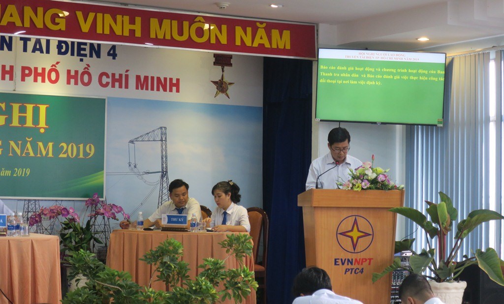 Tiếp theo Hội nghị, ông Trần Minh Phương, Trưởng phòng Tổng hợp trình bày báo cáo kết quả tổ chức Hội nghị Người lao động cấp phòng, đội, trạm. Hội nghị Người lao động cấp phòng, đội, trạm tiến hành thực hiện đầy đủ các nội dung theo hướng dẫn của TTĐHCM; có tổ chức thảo luận, đóng góp ý kiến, bàn biện pháp nhằm hoàn thành nhiệm vụ sản xuất; đóng góp ý kiến về Nội quy lao động, Thỏa ước lao động tập thể, các chế độ chính sách của TTĐHCM, PTC4, EVNNPT. Đa phần các phòng, đội, trạm đều thống nhất với các quy chế, quy định đang còn hiệu lực. Ngoài ra, có một số ý kiến gửi lên Hội nghị Người lao động cấp Truyền tải chủ yếu tập trung xoay quanh các vấn đề về quản lý kỹ thuật, an toàn bảo hộ lao động, chế độ chính sách, nhân sự và các chế độ liên quan đến Công đoàn. Trên cơ sở các ý kiến đóng góp; về phía chuyên môn, Công đoàn và các phòng nghiệp vụ đã nghiên cứu và phúc đáp cụ thể cho các phòng, đội, trạm.