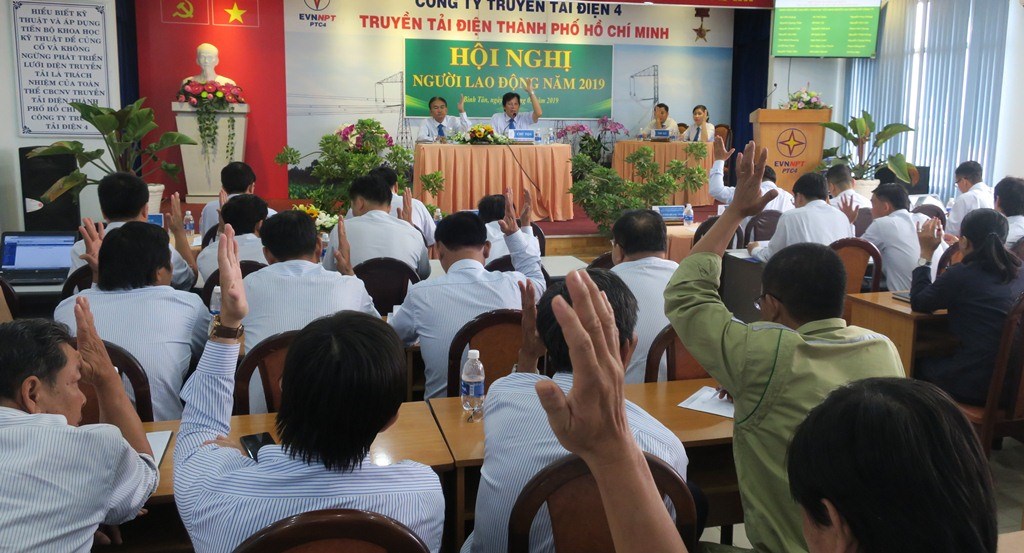 Hội nghị cũng đã dành thời gian để các Đại biểu trao đổi đóng góp ý kiến cho các mặt hoạt động nhằm hoàn thành chỉ tiêu nhiệm vụ kế hoạch năm 2019, thảo luận về Thỏa ước lao động tập thể, Nội quy lao động của EVNNPT, các quy chế, quy định còn hiệu lực. 100% Đại biểu nhất trí Nội quy lao động và Thỏa ước lao động tập thể của EVNNPT đang áp dụng, nhất trí các quy chế, quy định còn hiệu lực, không có ý kiến đóng góp hoặc sửa đổi.