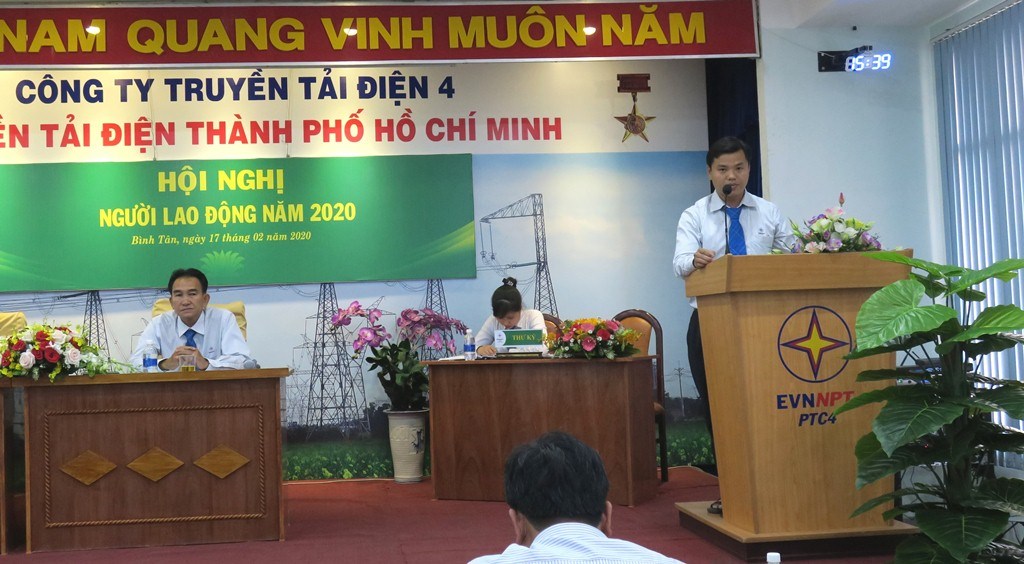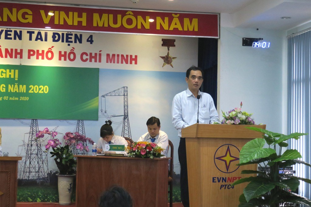 Thay mặt lãnh đạo TTĐHCM, đ/c Trần Anh Dũng – Phó Giám đốc trình bày báo cáo của chuyên môn đánh giá tình hình thực hiện Nghị quyết HNNLĐ năm 2019, kết quả sản xuất kinh doanh năm 2019 của TTĐHCM và phương hướng hoạt động năm 2020; Tình hình thực hiện thi đua, khen thưởng, kỷ luật, giải quyết khiếu nại, tố cáo, ……. liên quan đến quyền và lợi ích hợp pháp của người lao động; Quán triệt sâu rộng và triển khai thực hiện có hiệu quả các công việc và nhiệm vụ trọng tâm cần tập trung triển khai thực hiện trong năm 2020; phương án sắp xếp lại lao động trong tiến trình tái cơ cấu; ứng dụng công nghệ của cuộc Cách mạng công nghiệp 4.0; xây dựng các trung tâm vận hành, trạm biến áp không người trực; thực thi và phát triển Văn hóa EVNNPT……