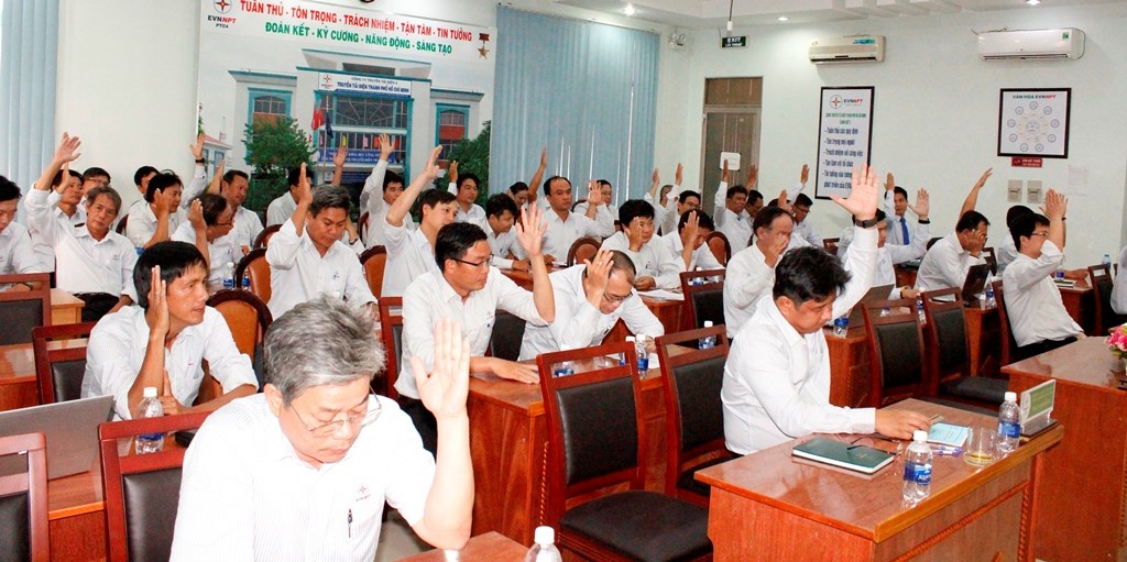 Tiếp theo, Hội nghị cũng đã dành thời gian để các Đại biểu trao đổi, đóng góp ý kiến cho các mặt hoạt động nhằm hoàn thành chỉ tiêu nhiệm vụ kế hoạch năm 2020 và hoàn thành nhiệm vụ kế hoạch 05 năm 2016-2020; thảo luận về Thỏa ước lao động tập thể, Nội quy lao động của EVNNPT, các quy chế, quy định còn hiệu lực. 100% đại biểu nhất trí Nội quy lao động và Thỏa ước lao động tập thể của EVNNPT đang áp dụng, nhất trí các quy chế, quy định còn hiệu lực, không có ý kiến đóng góp hoặc sửa đổi.