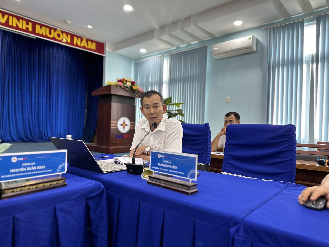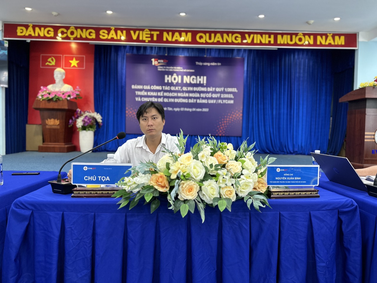 Chủ trì hội nghị Ông Nguyễn Xuân Bình – Phó giám đốc TTĐHCM, cùng tham dự về phía Ban Giám đốc TTĐHCM có Ông Trịnh Đình Chính – Giám đốc TTĐHCM, Trưởng các Phòng, Đội TTĐ cùng các cán bộ kỹ thuật phụ trách đường dây, các cán bộ hành lang các Đội Truyền tải điện (Đội TTĐ).