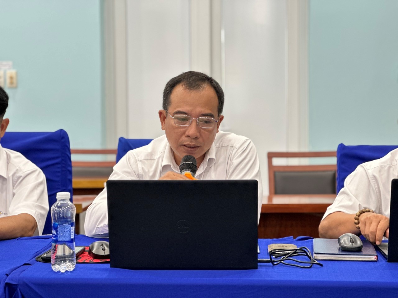 Ông Nguyễn Thiện Tâm – Trưởng Phòng Kỹ thuật TTĐHCM trình bày báo cáo công tác QLKT, QLVH trạm biến áp quý 2/2023
