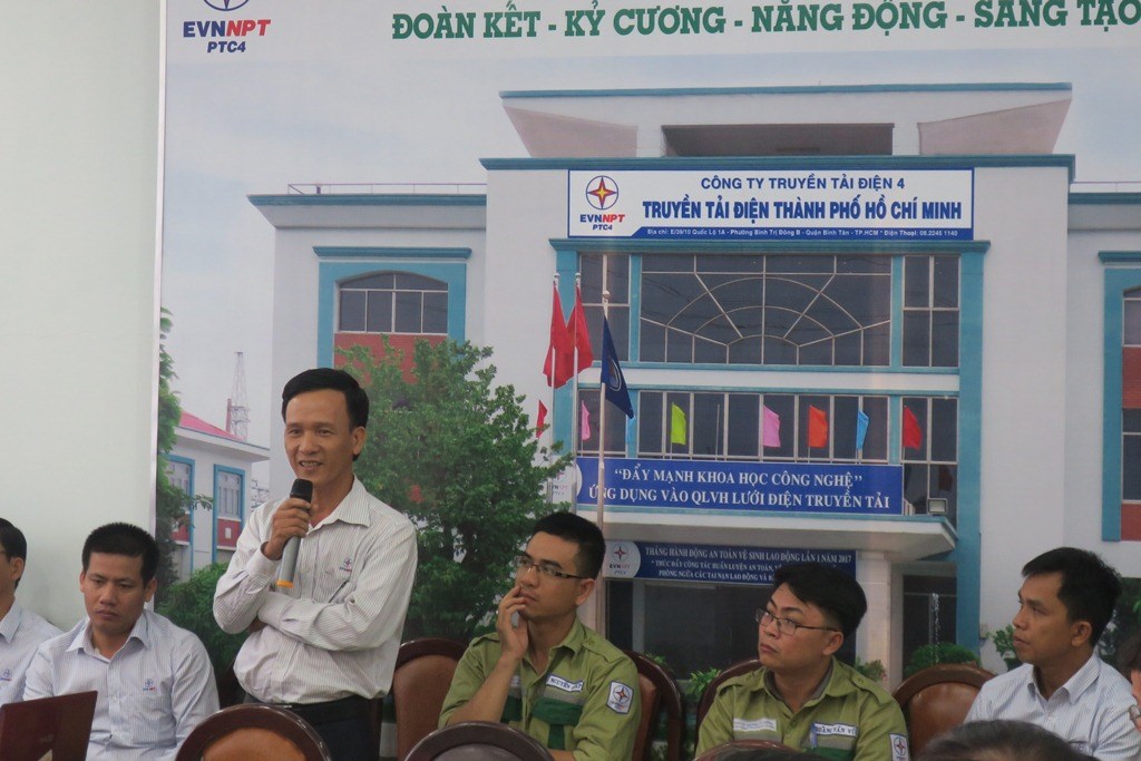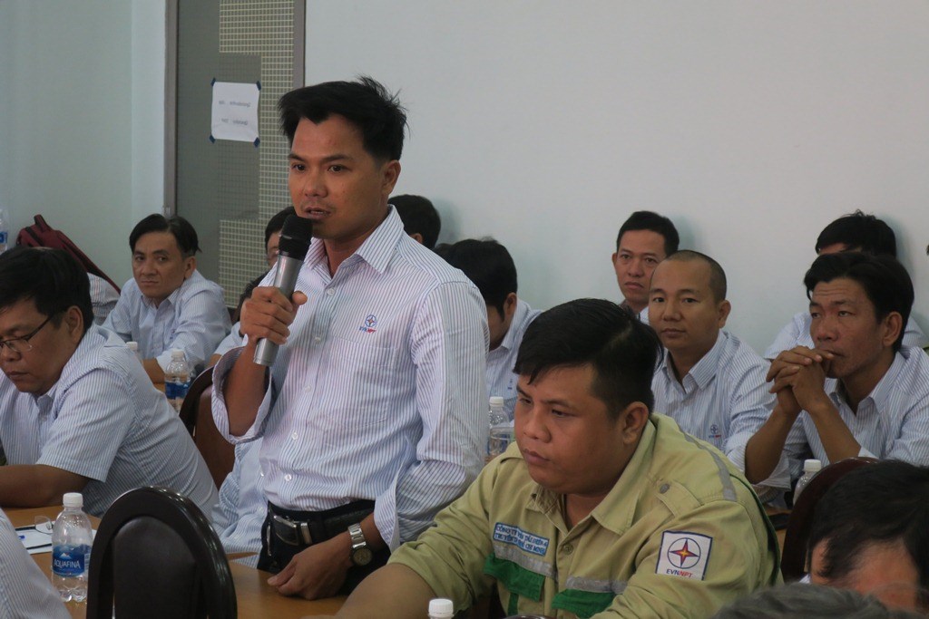 Ông Lâm Ngọc Duy Thanh – Trưởng trạm Bình Chánh trình bày ý kiến về công tác quản lý, theo dõi thiết bị trong trạm biến áp