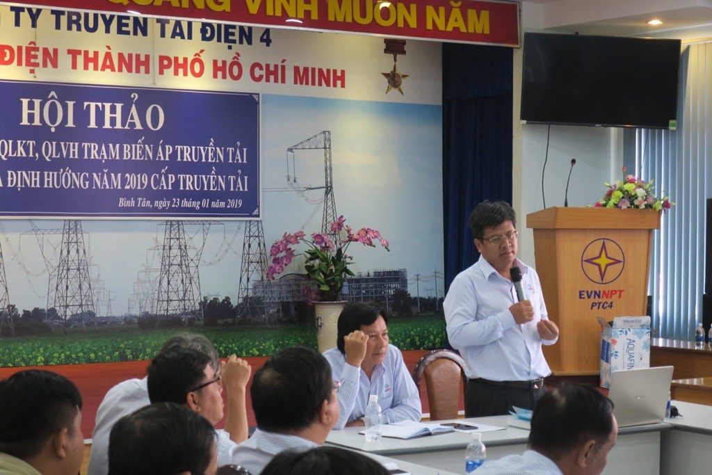 Thay mặt TTĐHCM, ông Nguyễn Thiện Tâm - Trưởng phòng Kỹ thuật trình bày báo cáo về thực trạng công tác quản lý kỹ thuật, vận hành trạm biến áp năm 2018 và phương hướng năm 2019. Nội dung báo cáo đã nêu rõ các kết quả thực hiện được trong năm 2018, trong đó nỗi bật là TTĐHCM đã hoàn tất số hóa hồ sơ quản lý kỹ thuật phần trạm; ngoài ra báo cáo còn thể hiện định hướng các giải pháp quản lý kỹ thuật năm 2019, trong đó chú trọng thực hiện đưa vào vận hành không người trực đối với các trạm 220kV; các nội dung thực hiện chưa đạt trong năm 2018, nguyên nhân và biện pháp khắc phục; phân tích nguyên nhân về mặt quản lý đối với các sự cố đã xảy ra trong phạm vi các trạm biến áp của TTĐHCM và đề xuất thay đổi cách quản lý hiện nay để kiểm soát được các nguy cơ sự cố; đánh giá hiệu quả các giải pháp kỹ thuật, đã triển khai thực hiện và đề xuất bổ sung các giải pháp nhằm ngăn ngừa, giảm thiểu các nguy cơ sự cố trạm biến áp trong năm 2019.