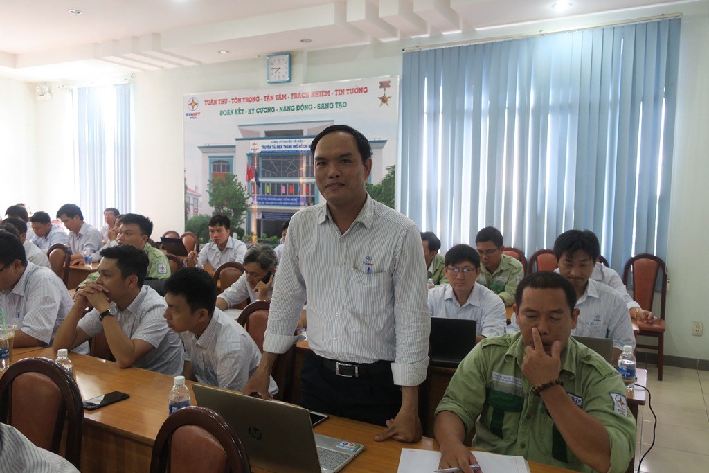 ông Nguyễn Công Liệt – Điều hành viên trạm 220kV Bình Chánh phát biểu ý kiến đóng góp tại lớp học.