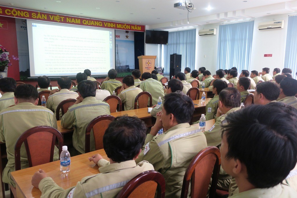 Lớp học được chia thành 03 đợt, mỗi đợt 01 ngày, gồm 01 buổi hướng dẫn lý thuyết tại Hội trường Truyền tải và 01 buổi thực hành tại bãi tập đường dây của TTĐHCM. Hướng dẫn lớp là ông Lê Minh Tuấn – Cán bộ An toàn thuộc phòng Kỹ thuật và ông Trần Thanh Bình – Cán bộ kỹ thuật đường dây của đơn vị Truyền tải. Tham gia lớp học gồm 125 Điều hành viên các trạm biến áp trực thuộc TTĐHCM.