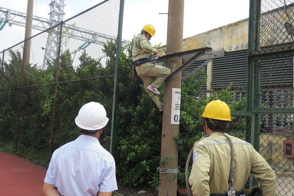 Vì vậy, để thực hiện các công việc được phân định, Truyền tải điện TP. Hồ Chí Minh đã chủ động giao một số nội dung công việc cho các Điều hành viên trạm biến áp thực hiện, đồng thời tổ chức hướng dẫn cho toàn bộ lực lượng Điều hành viên trạm biến áp về kỹ năng leo cao, các quy định về leo cao; yếu tố nguy hiểm và biện pháp phòng ngừa; hướng dẫn sử dụng dây an toàn; thực hành sử dụng dây an toàn và các kỹ năng làm việc trên cao theo Quy trình an toàn điện của Tập đoàn điện lực Việt Nam, ban hành kèm theo Quyết định số 959/QĐ-EVN ngày 09/8/2018, người làm việc với độ cao từ 2,0m trở lên phải sử dụng dây đeo an toàn. Qua đó, các Điều hành viên được củng cố thêm kiến thức, kỹ năng leo cao và làm việc trên cao, cũng như đáp ứng nhu cầu công tác trong giai đoạn hiện nay.