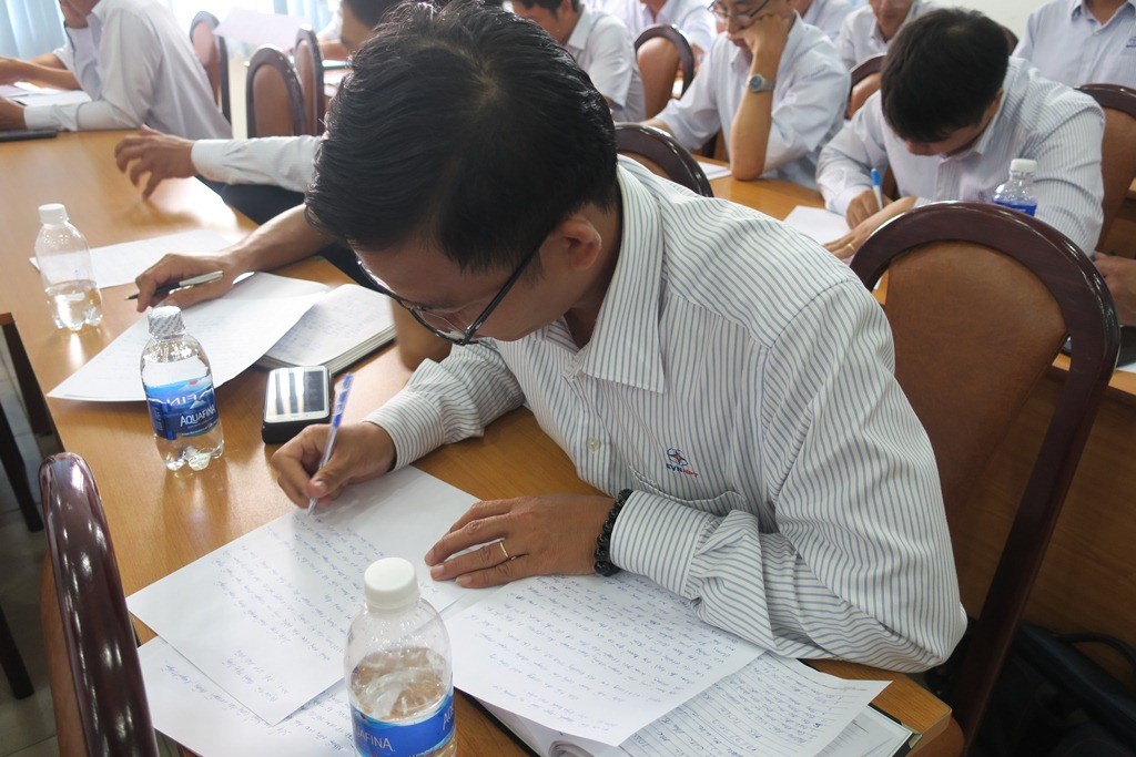 Học viên thực hành bài viết cuối buổi tập huấn.