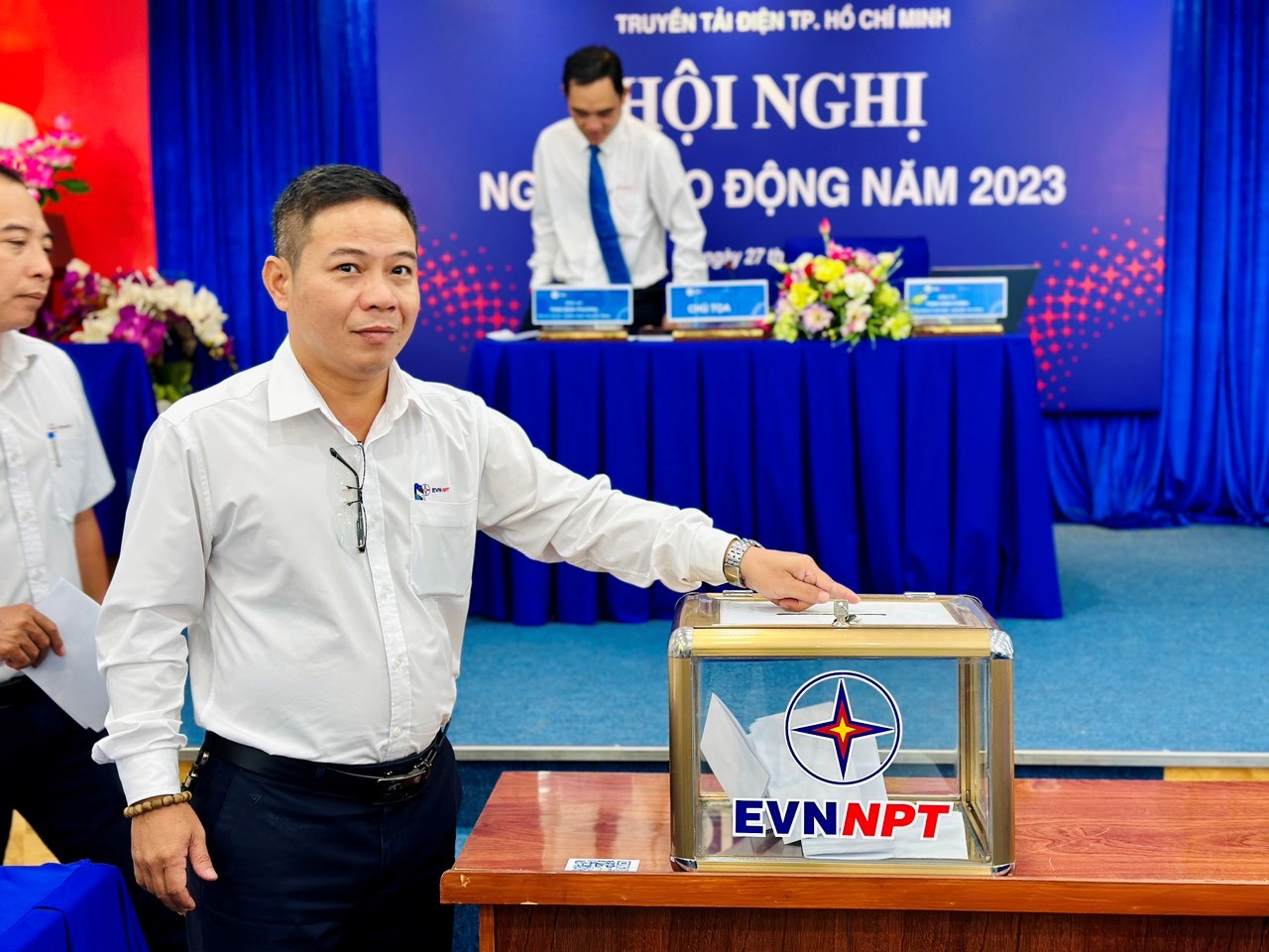 Hội nghị cũng tiến hành bầu cử Đại biểu tham dự hội nghị Người lao động cấp Công ty năm 2023 và Ban bầu cử tiến hành tổ chức bỏ phiếu.