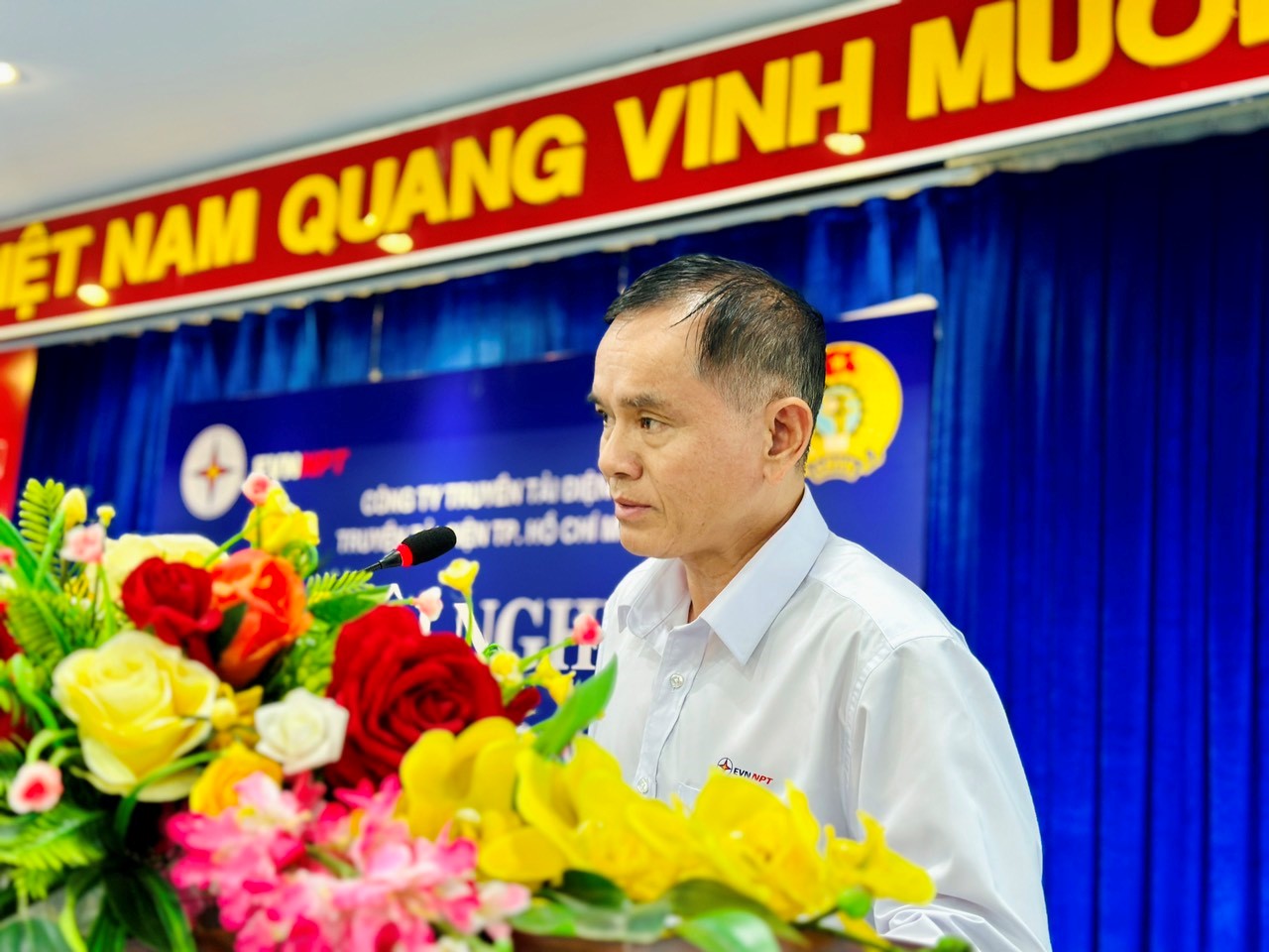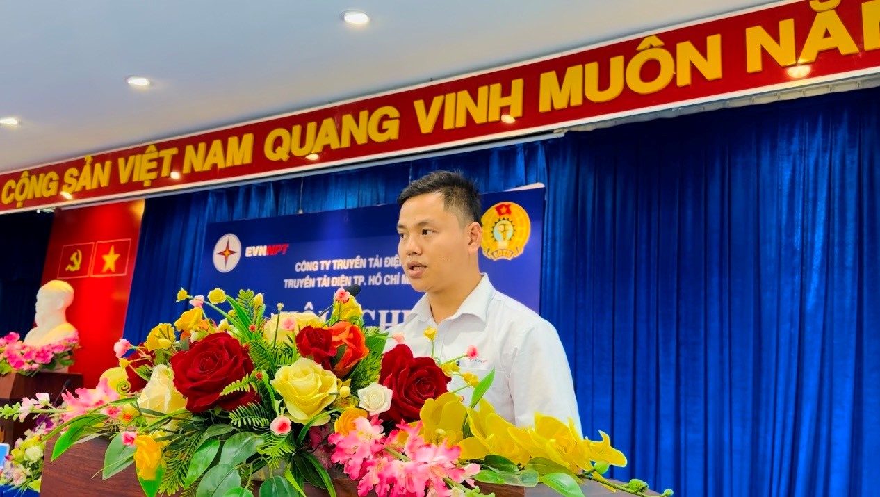 Ông Lê Minh Tuấn – Thư ký Hội nghị trình bày nghị quyết hội nghị người lao động truyền tải điện Thành phố Hồ Chí Minh năm 2023