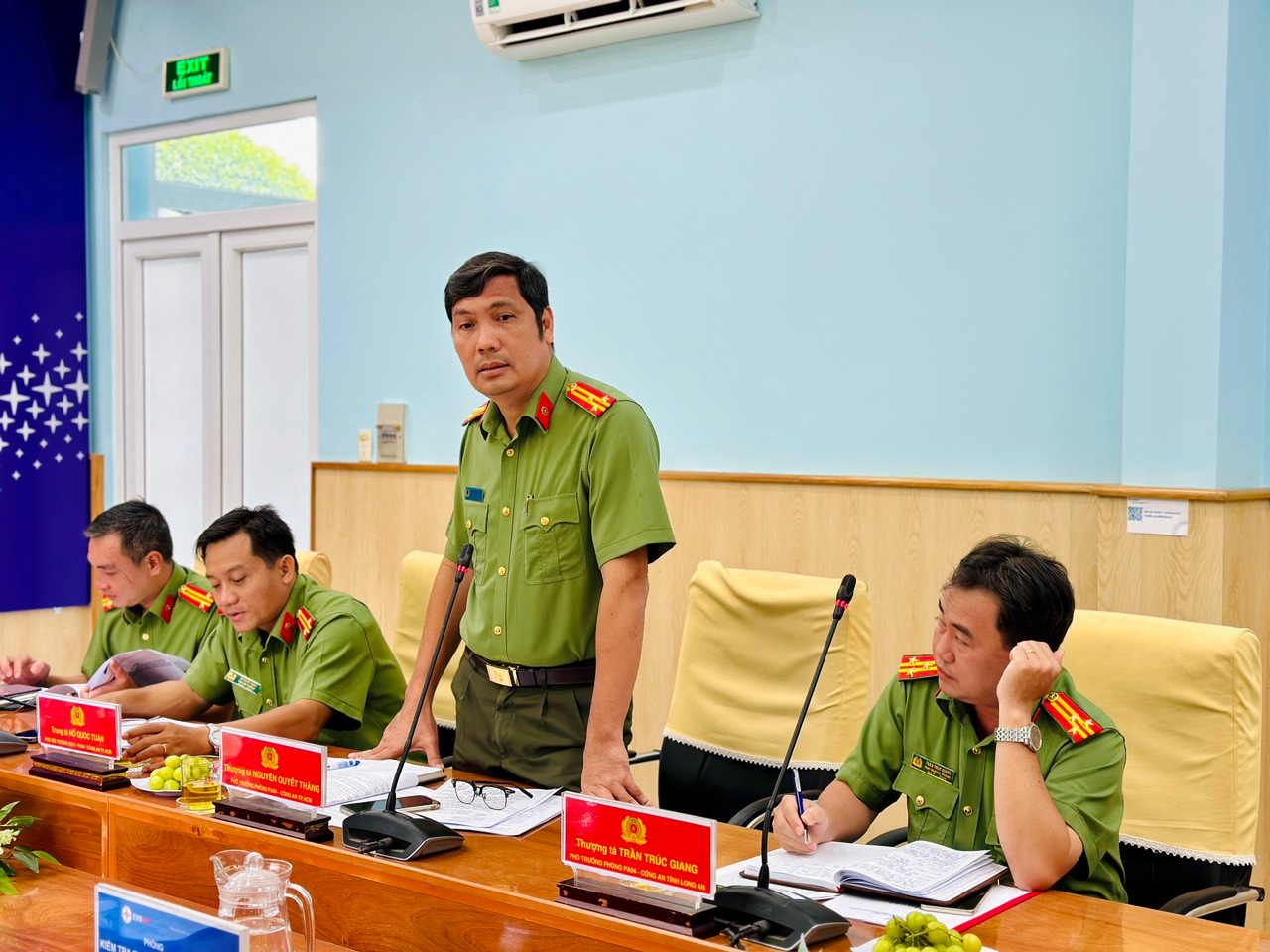 Đồng chí Thượng tá Trần Trúc Giang – Phó Trưởng phòng An ninh Kinh tế Công an tỉnh Long An phát biểu.