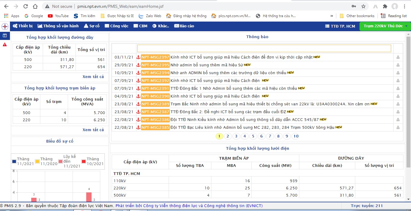 Dữ liệu thiết bị được cập nhật trên chương trình PMIS