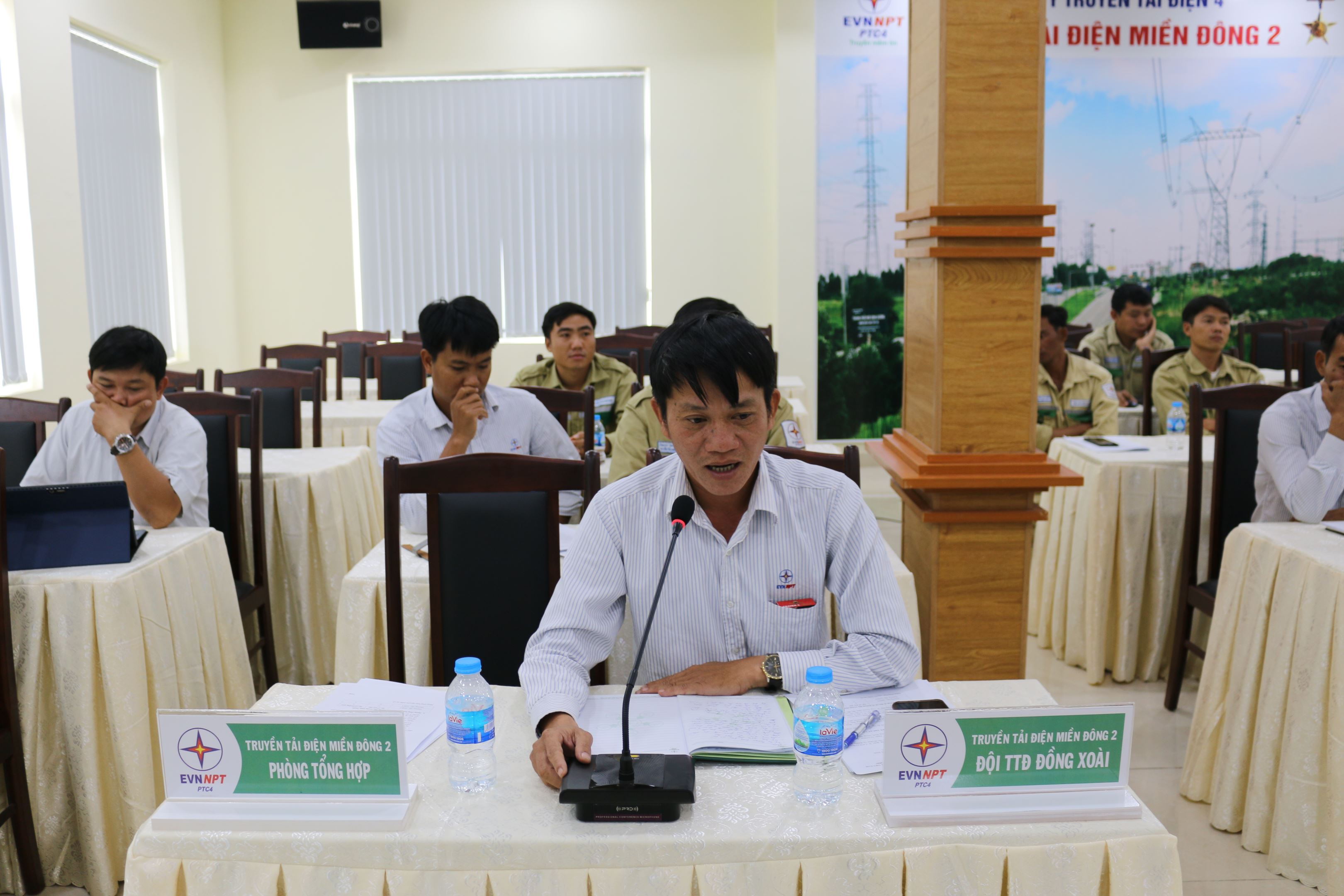 Ông Nguyễn Thanh Tân – CBHL đội TTĐ Tây Ninh tham luận công tác phối hợp đồn biên phòng tỉnh Tây Ninh bảo vệ đường dây 220kV giáp biên giới Campuchia.