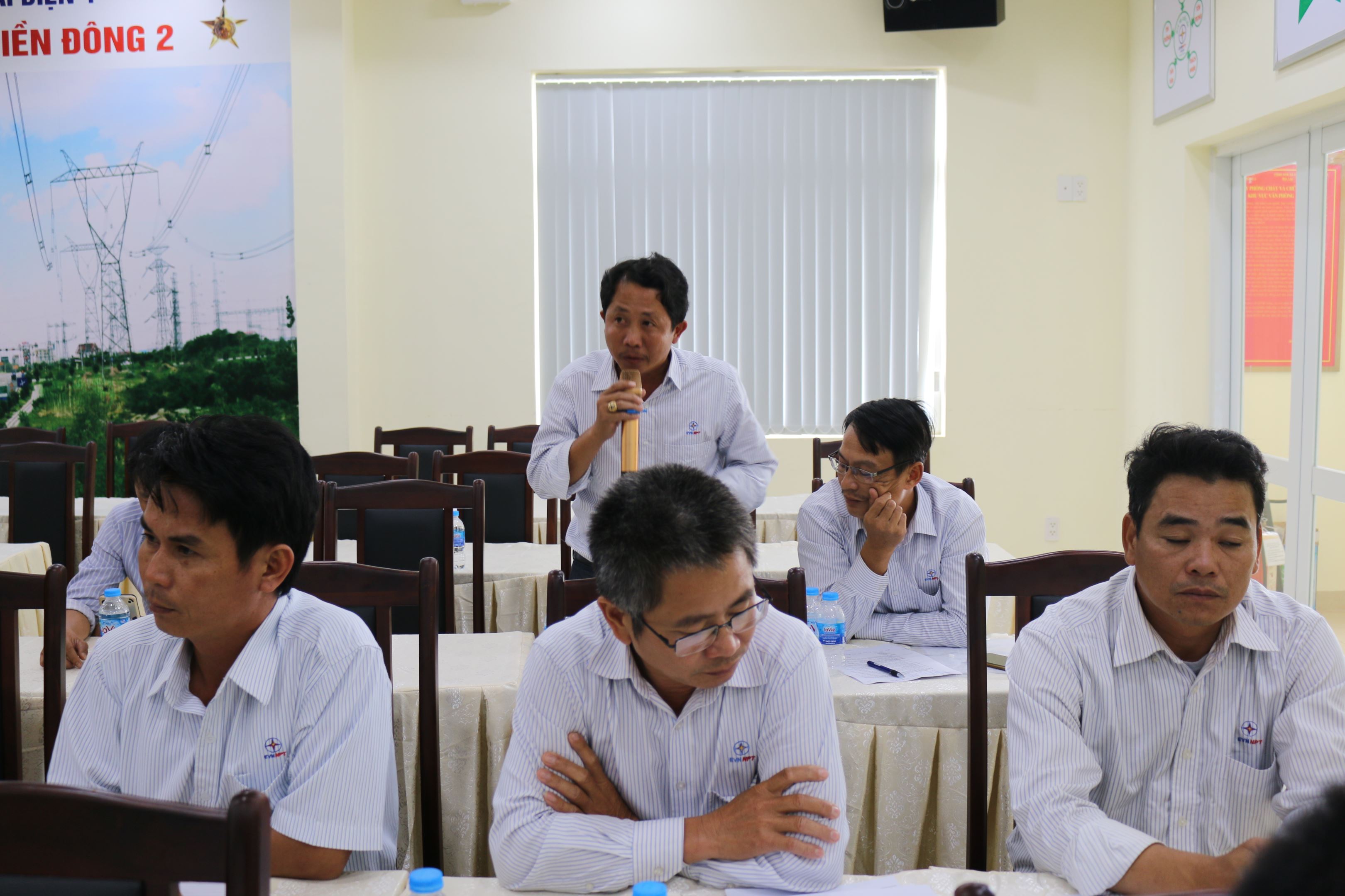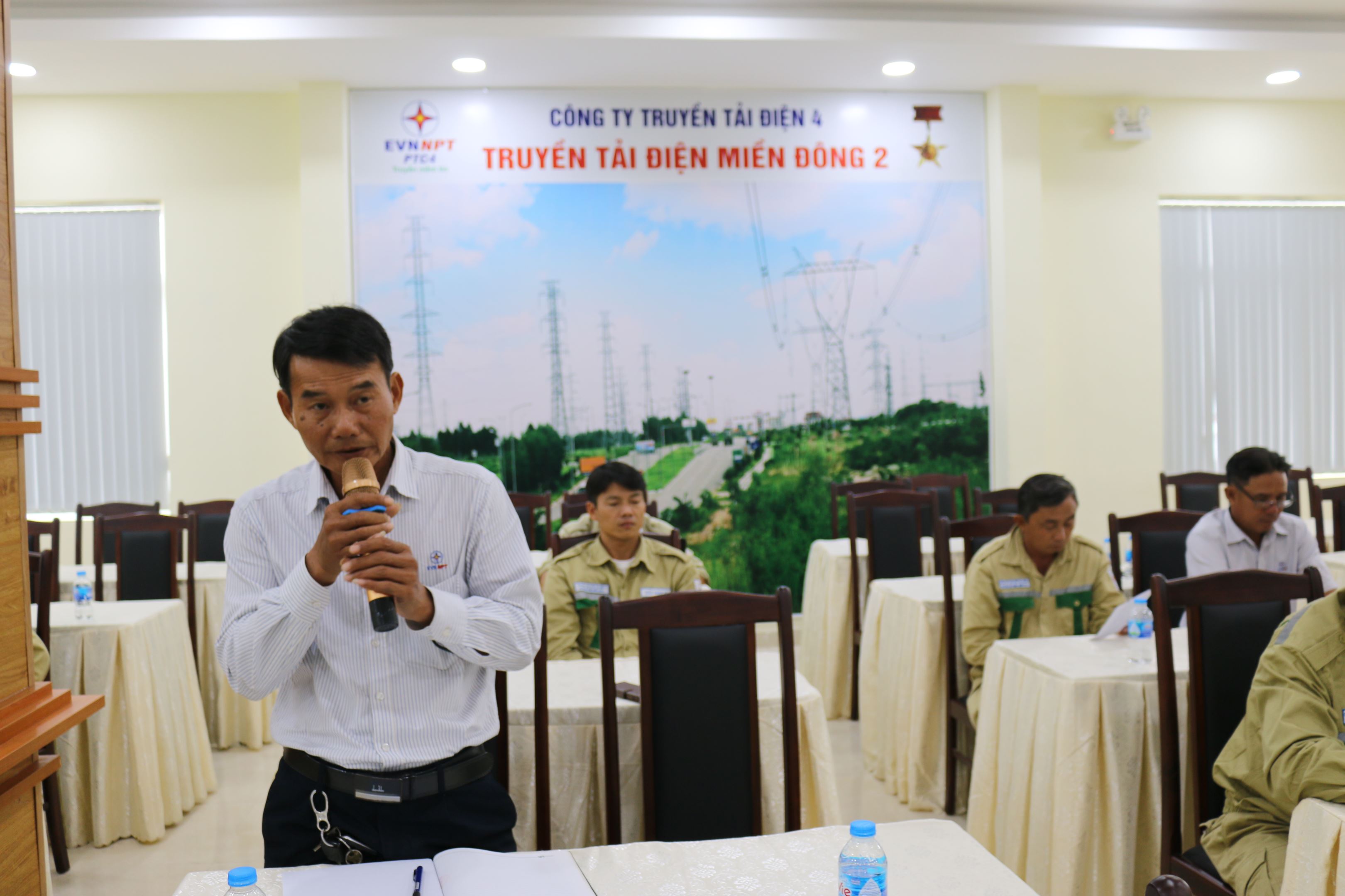 Ông Hoàng Đắc Sanh – CBKT đội TTĐ Thủ Dầu Một tham luận đánh giá hiệu quả công tác lắp jumpe cột cao trên 40m.