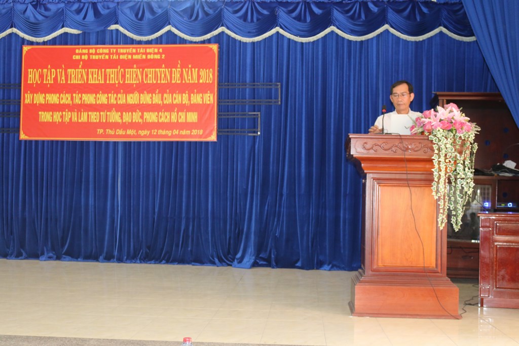 Tại buổi học tập, TTĐMĐ2 được đồng chí Trần Văn Mến – Phó Bí thư Đảng ủy Khối Doanh nghiệp Tỉnh Bình Dương hỗ trợ chi bộ triển khai, quán triệt nội dung chuyên đề năm 2018 đến 33 đảng viên, 133 đoàn viên công đoàn được triệu tập trong đợt 1 theo kế hoạch số 39/KH-CB ngày 05/04/2018 của Chi bộ Truyền tải điện Miền Đông 2.