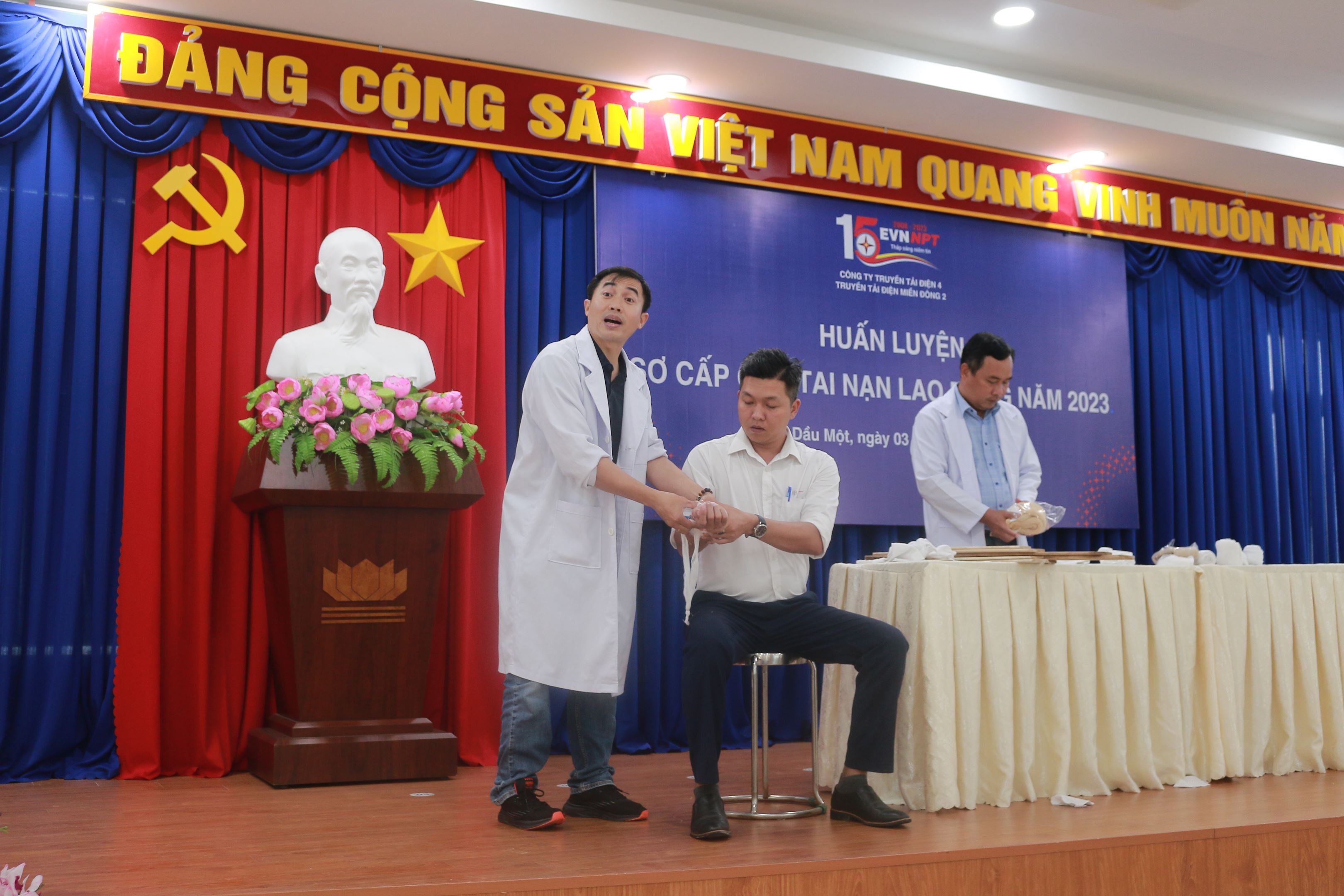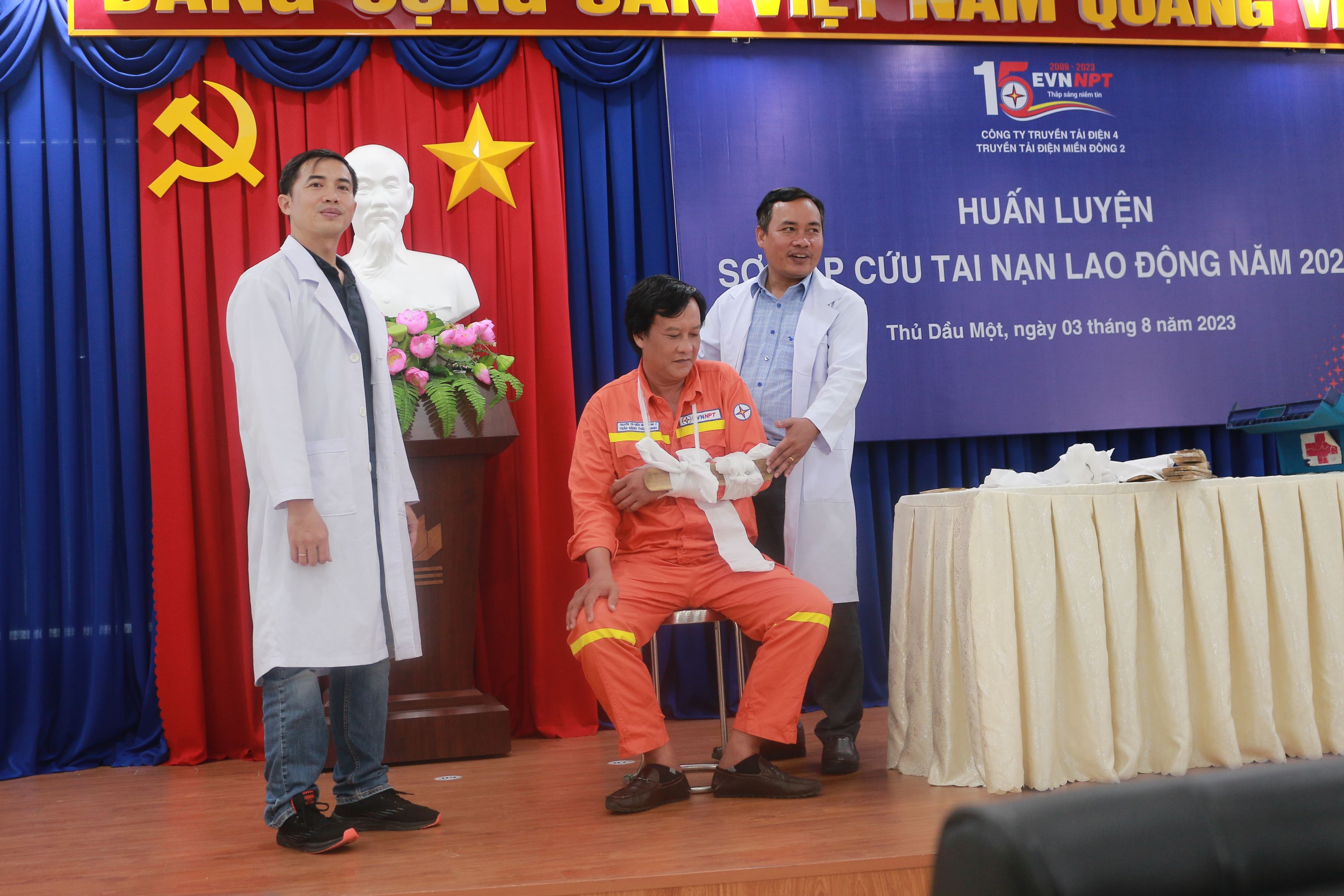 Tại lớp học CBCNV trong đơn vị được 02 BS Đồng Quốc Trường và BS Nguyễn Thanh Phong - phòng khám đa khoa An Thành Sài Gòn đã truyền đạt phần lý thuyết gồm 13 bài là Nguyên tác sơ cấp cứu ban đầu, hồi sức nhân tạo, sơ cứu nạn nhân bị nghẹt, sơ cứu nạn nhân bị điện giật, sơ cứu nạn nhân bị xỉu, sơ cứu nạn nhân bị hạ đường huyết, sơ cứu nạn nhận bị say nóng-say nắng, sơ cứu nạn nhân bị hạ canxi máu, sơ cứu nạn nhân chảy máu, băng vết thương, sơ cứu nạn nhân bỏng, sơ cứu nạn nhân gãy xương, cáng cứu thương.