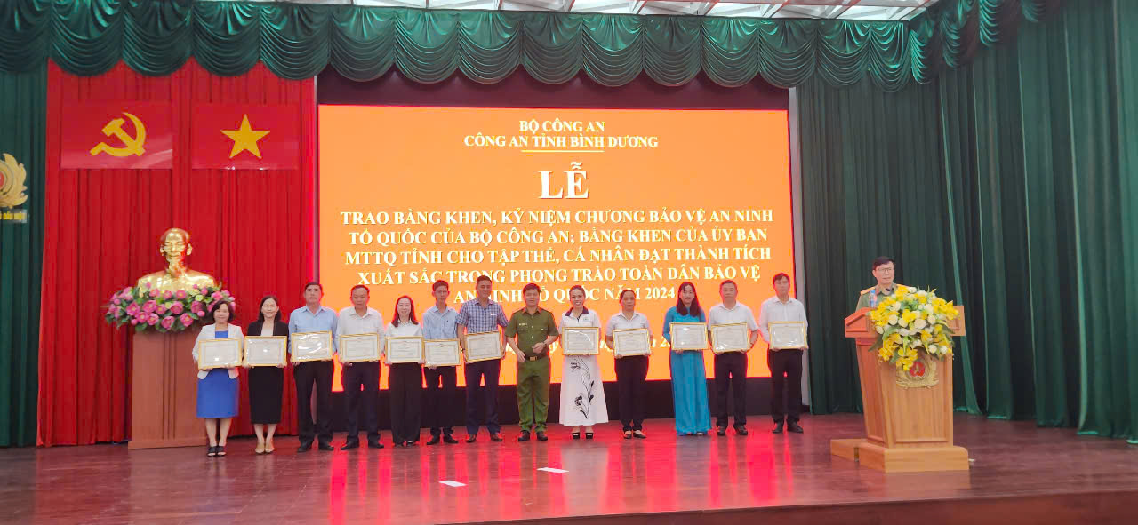 Ông Nguyễn Xuân Bình - Phó Giám đốc Truyền tải điện miền Đông 2 ( đứng trong cùng) nhận bằng khen của Ủy ban mặt trận Tổ quốc tỉnh Bình Dương cho Tập thể Truyền tải điện miền Đông 2.