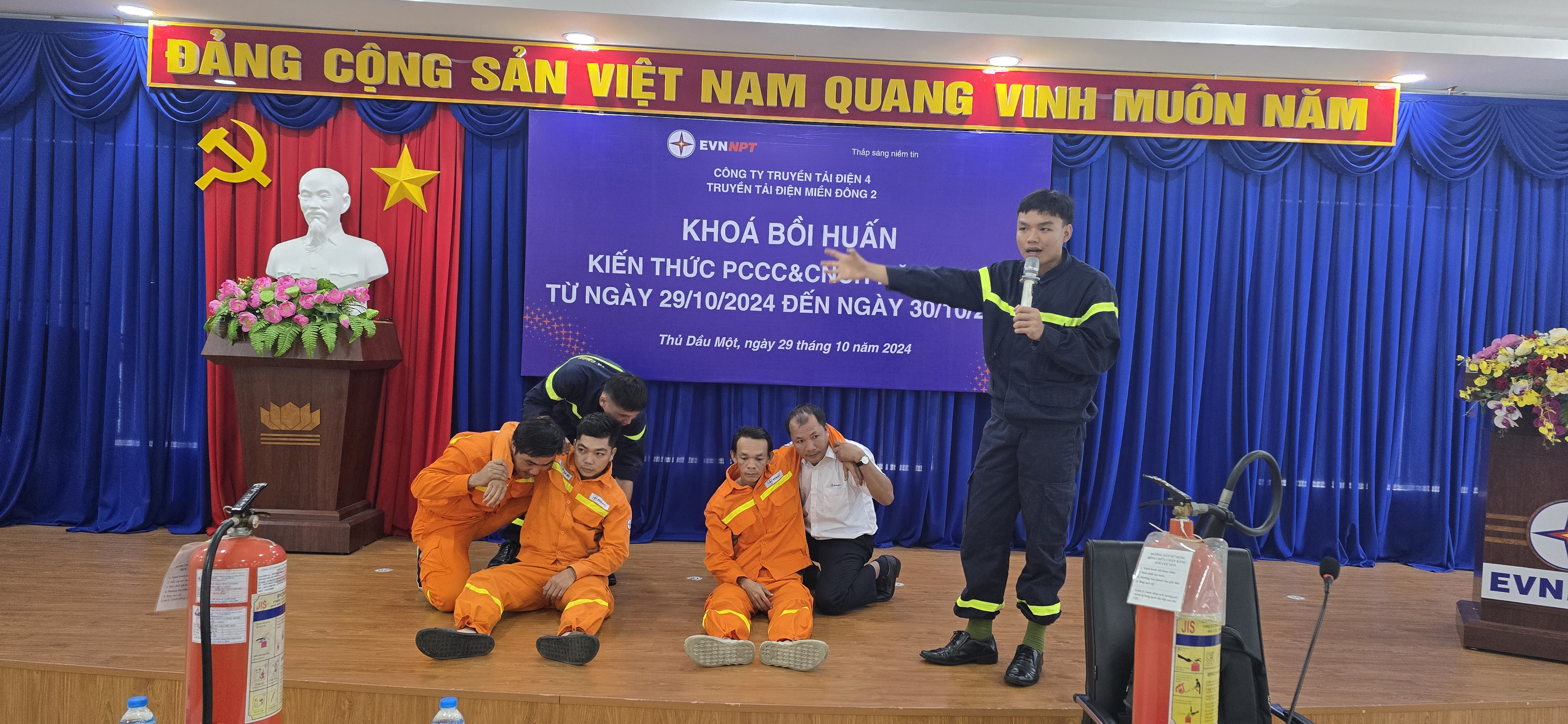 Hướng dẫn lớp học là thượng úy Phan Anh Vũ, Thượng sĩ Phan Văn Đạt, cán bộ cảnh sát PCCC và CNCH PC07 Bình Dương. Lớp huấn luyện đã được thông tin cơ bản về một số vụ cháy lớn và tình hình cháy, nổ trong phạm vi cả nước, trên địa bàn tỉnh Bình Dương trong thời gian gần đây; tuyên truyền về Luật phòng cháy chữa cháy, Nghị định số 136/2020/NĐ-CP ngày 24/11/2020 của Chính phủ Quy định chi tiết một số điều và biện pháp thi hành Luật PCCC và Luật sửa đổi; Nghị định số 83/2017/ NĐ-CP ngày 18/7/2017 của Chính phủ quy định về công tác CNCH của lực lượng Cảnh sát PCCC và các văn bản quy phạm pháp luật có liên quan đến công tác PCCC&CNCH. Nêu nguyên nhân gây ra cháy, đặc điểm nguy hiểm cháy, nổ đối với cơ sở truyền tải điện, các biện pháp phòng cháy đối với cơ sở truyền tải điện.