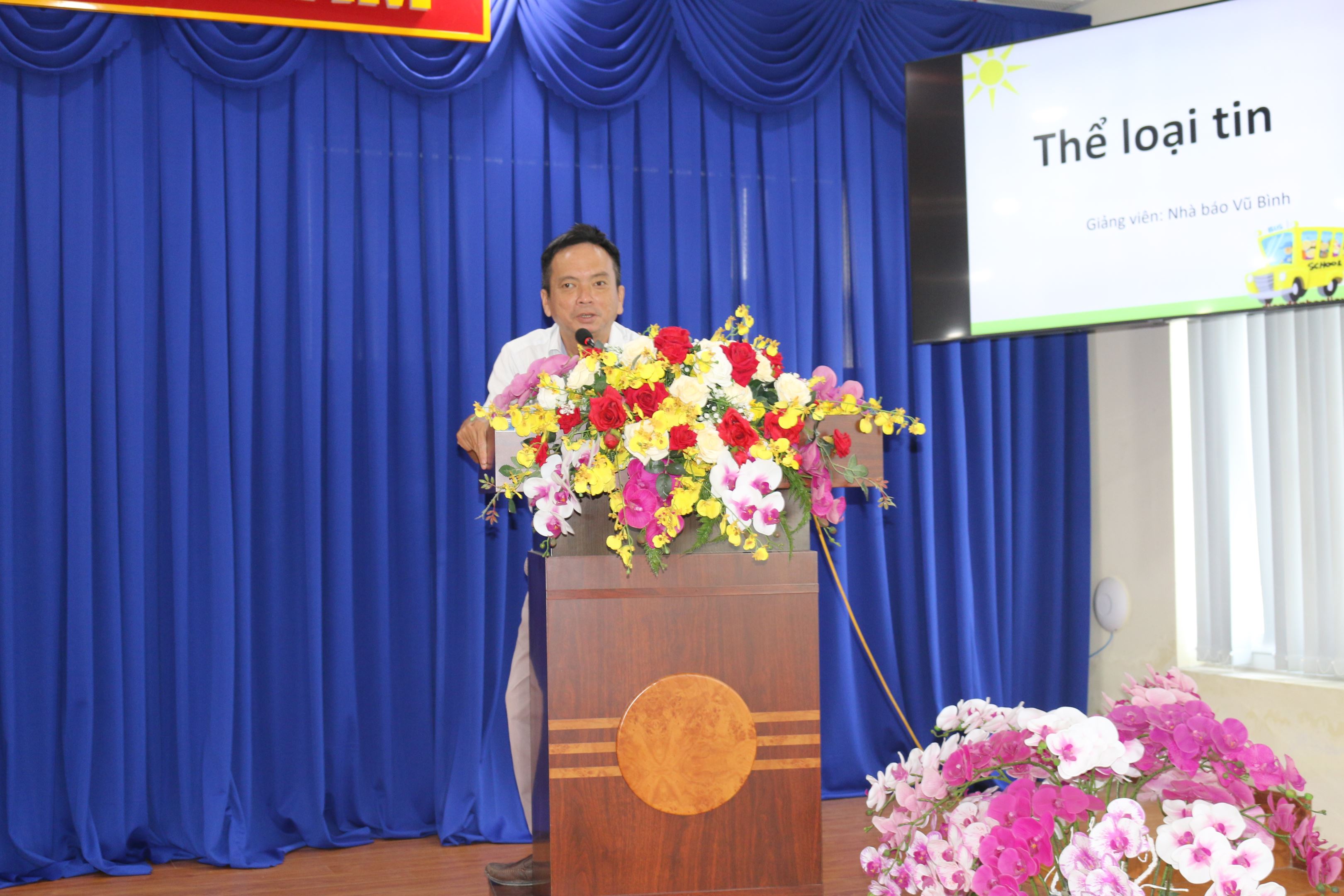 Nhà báo Vũ Bình Thạc sĩ báo chí, Trưởng Phòng Truyền hình báo Tuổi Trẻ, chuyên gia tư vấn, xử lý khủng hoảng truyền thông hướng dẫn lớp học
