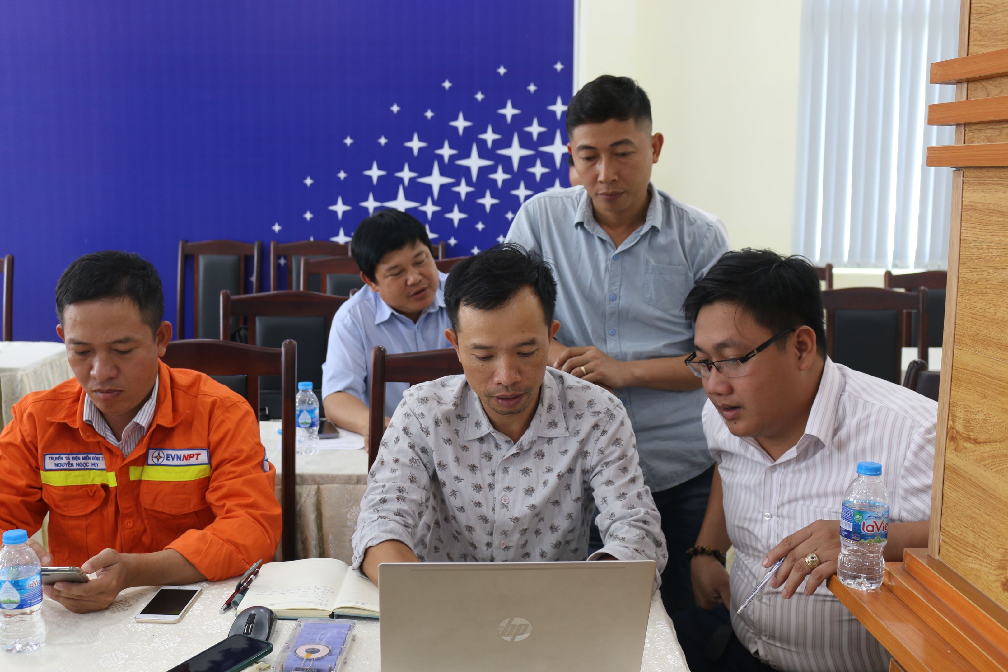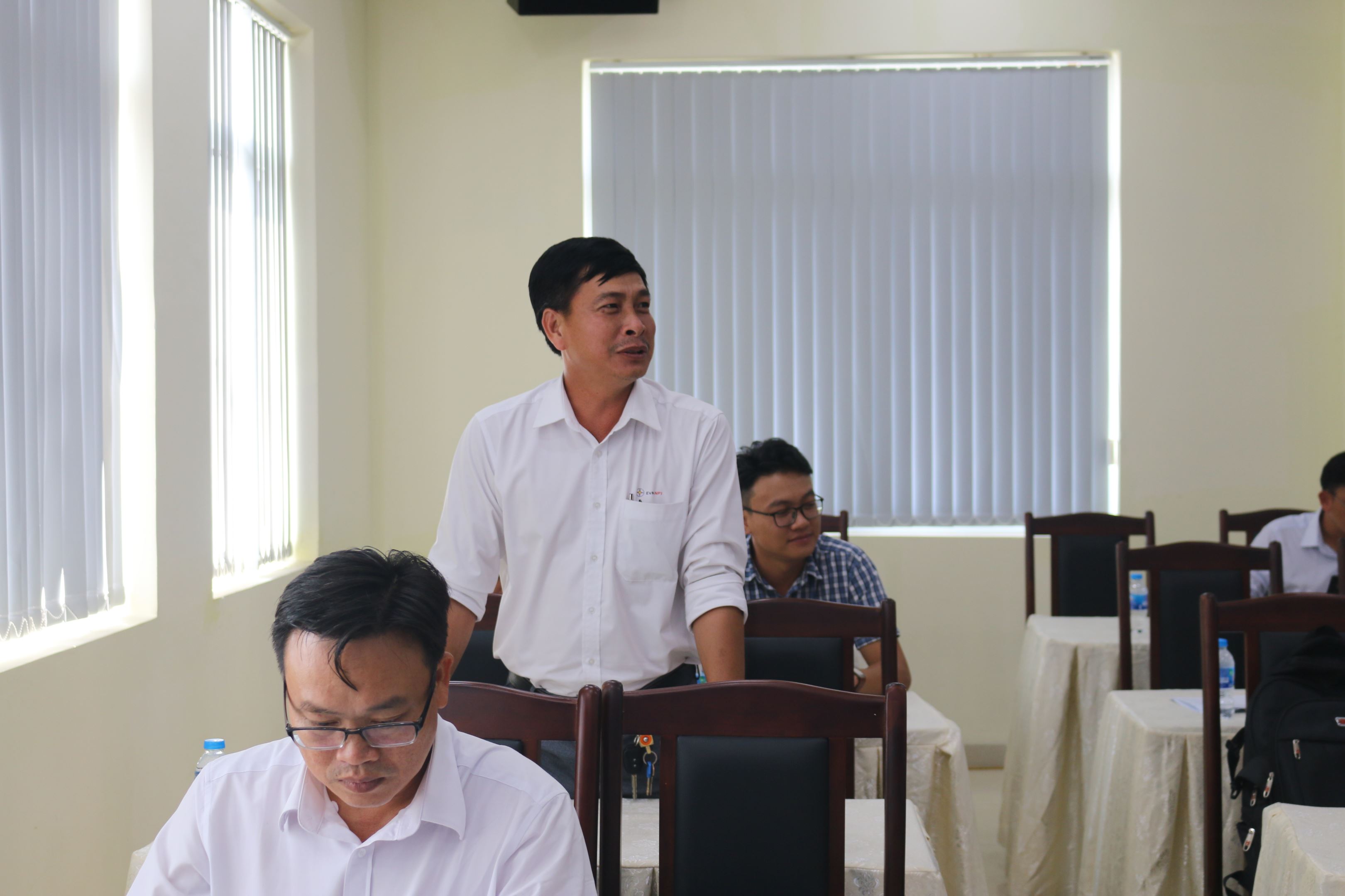 Anh Dương Xuân Phú -Điều hành viên trạm 500kV Tân Uyên trao đổi viết tin tại lớp học