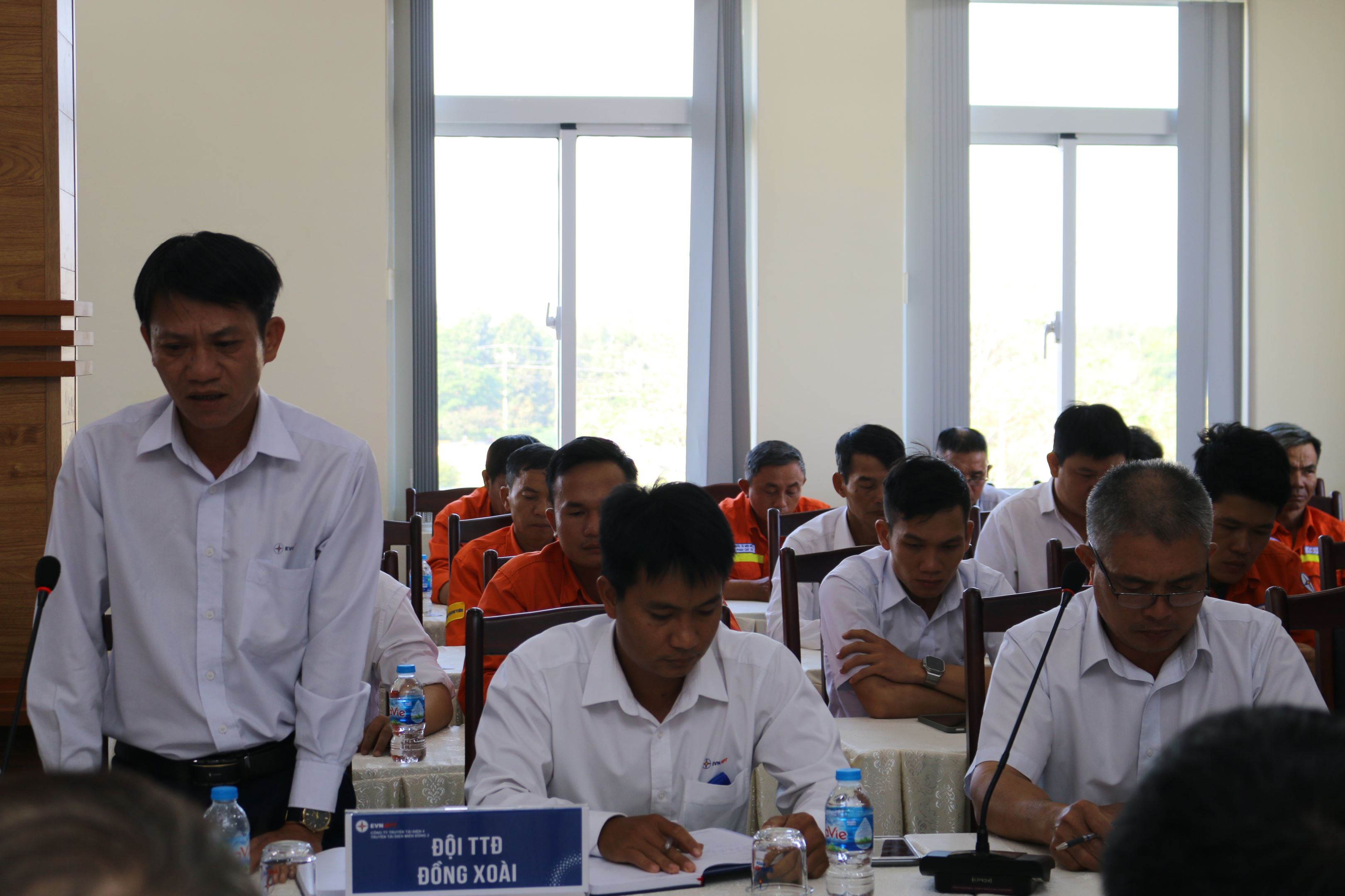 Anh Nguyễn Quốc Tuân - Đội Trưởng Đội TTĐ Tây Ninh trình bày giải pháp ngăn ngừa sự cố do ảnh hưởng của Đơn vị thi công tại hội nghị